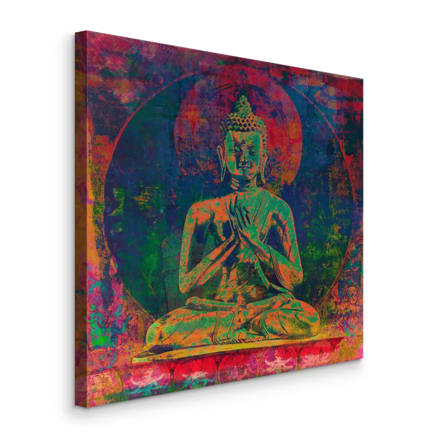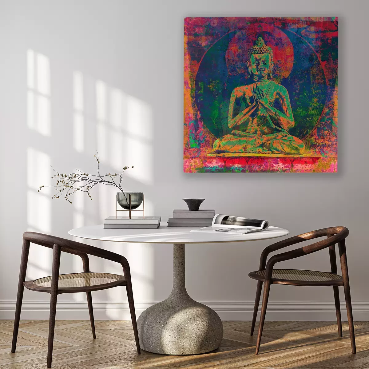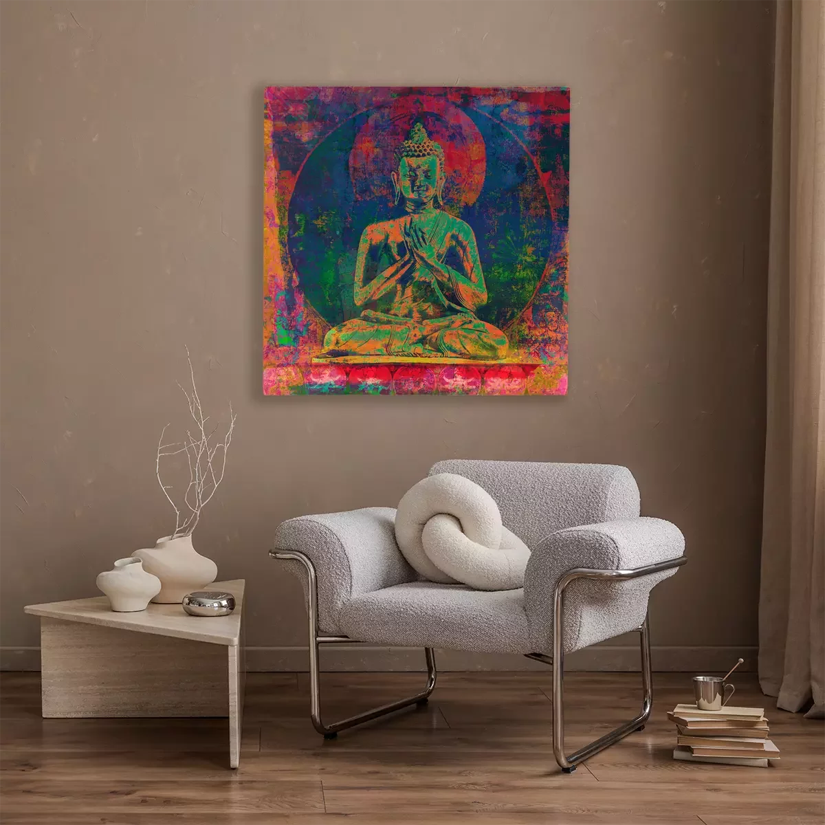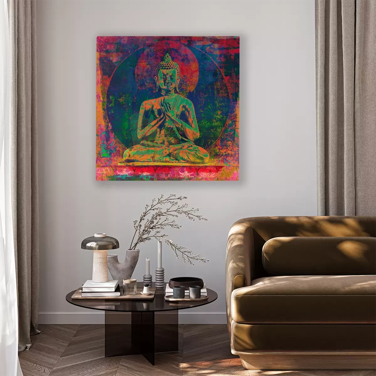 Canvas Ancient Buddha mandala with textured and grunge painted overlays for a modern contemporary style.