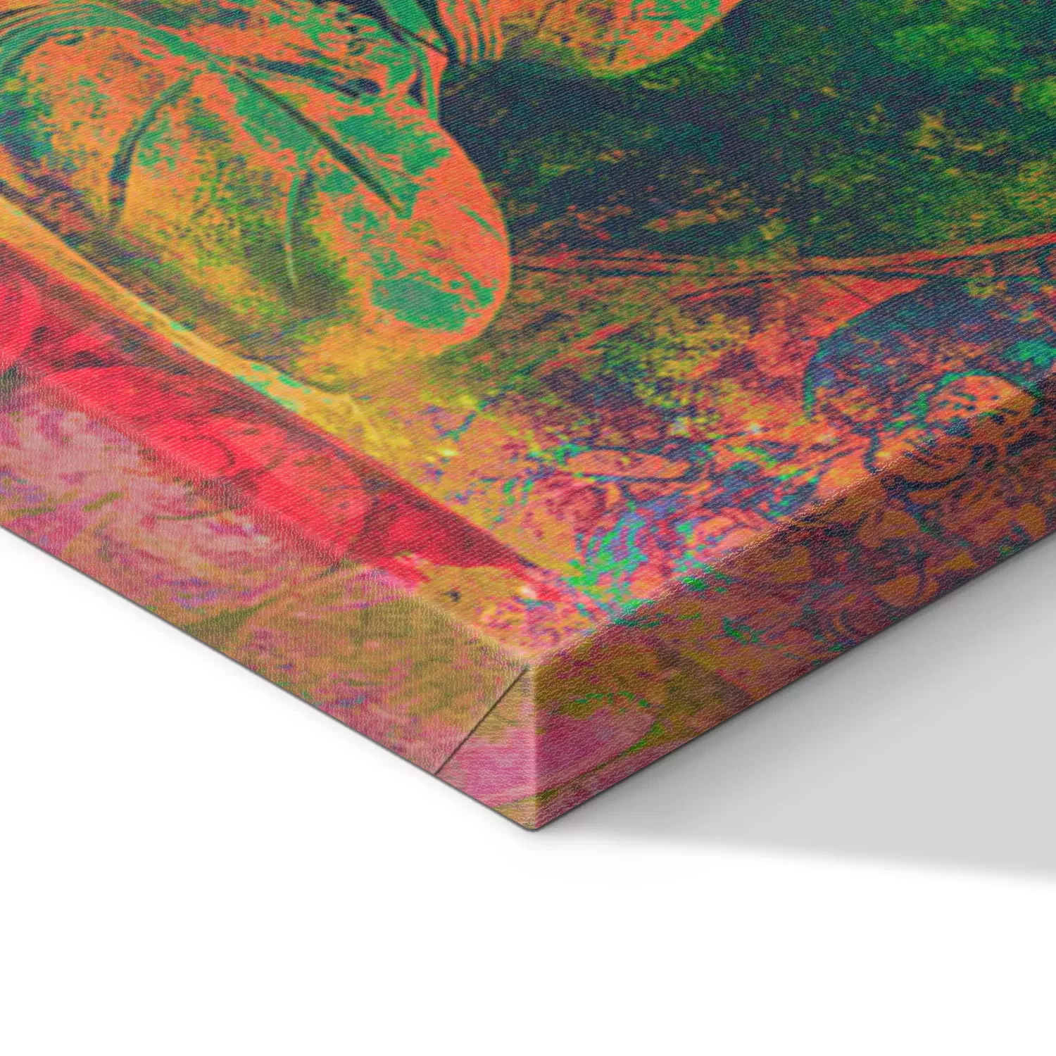 De print wordt aangebracht op hoogwaardig canvas dat op een schildersweefgetouw (spieraam) wordt gespannen. Omdat de print de zijranden bedekt, hoeft het ontwerp niet met een extra kader te worden omlijst. Wij raden ook composities aan die uit meerdere foto's bestaan en zo een coherente compositie vormen.
