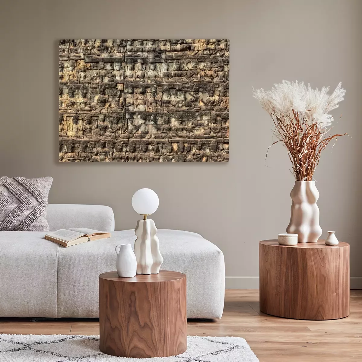 De print wordt aangebracht op hoogwaardig canvas dat op een schildersweefgetouw (spieraam) wordt gespannen. Omdat de print de zijranden bedekt, hoeft het ontwerp niet met een extra kader te worden omlijst. Wij raden ook composities aan die uit meerdere foto's bestaan en zo een coherente compositie vormen.
