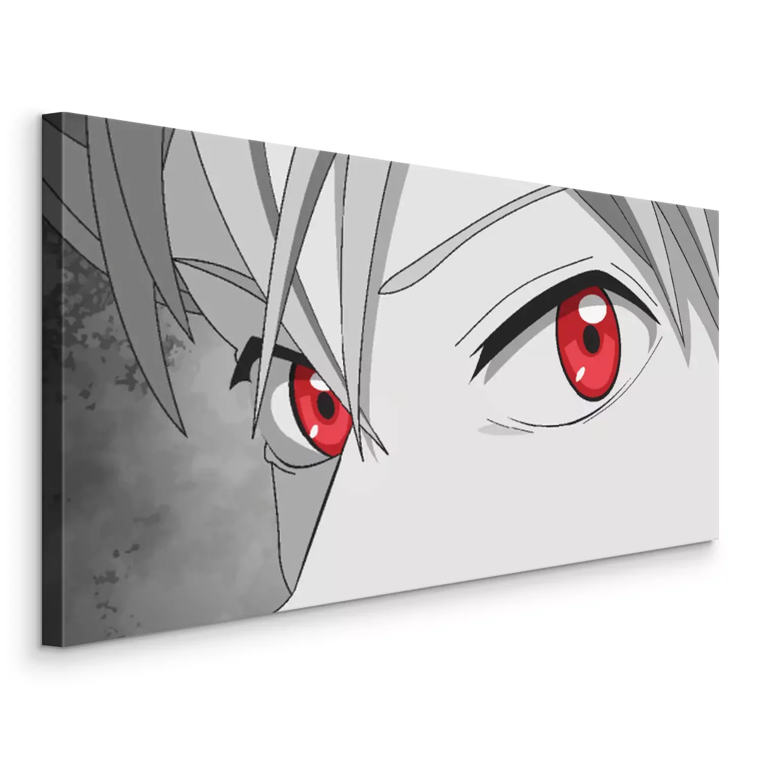 Anime-gezicht van beeldverhaal met anime rode ogen op zwart-witte achtergrond. Vector illustratie