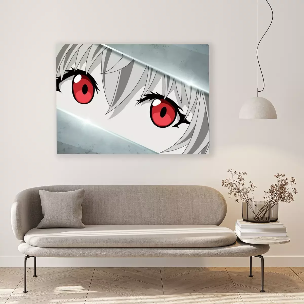 Web banner for anime, manga. Anime face with red eyes from cartoon. Vector illustration