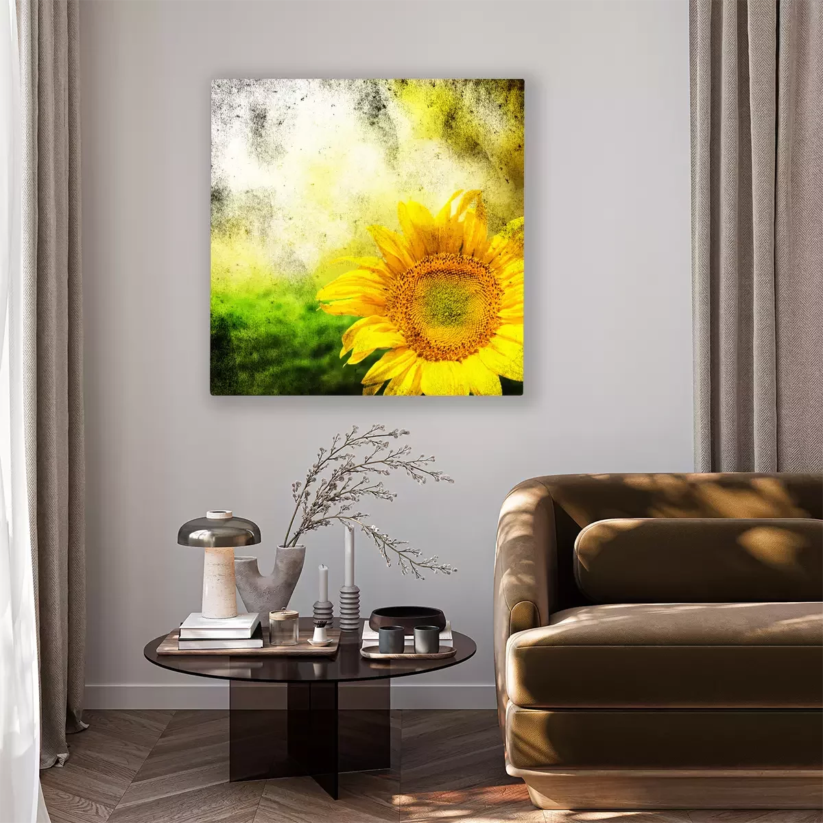 Canvas: Antieke foto met een zonnebloem