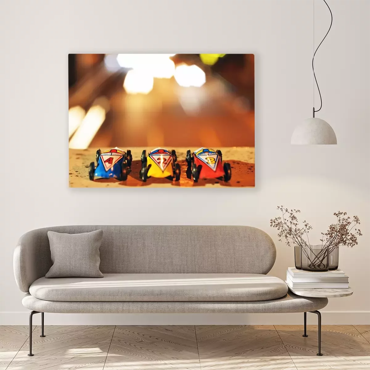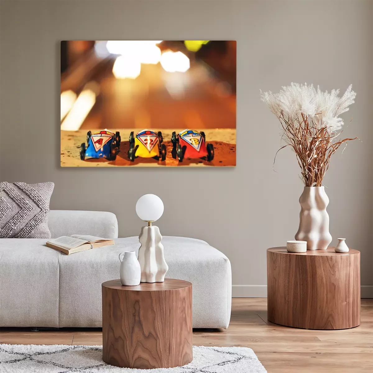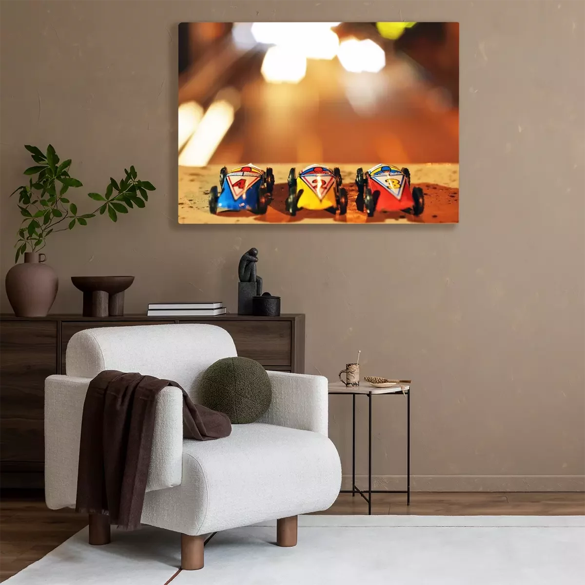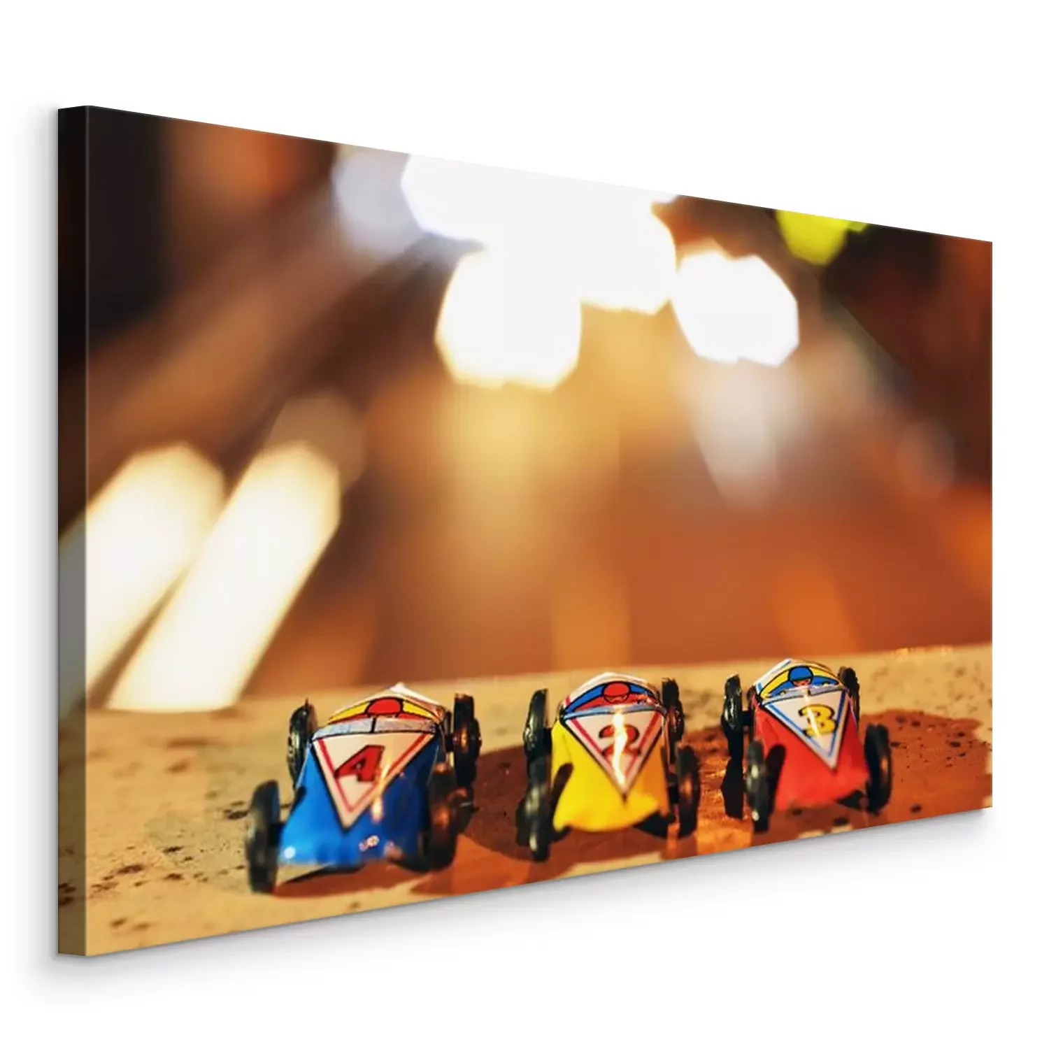 Canvas Antieke raceauto's, vóór 1960, in de nacht op straat.