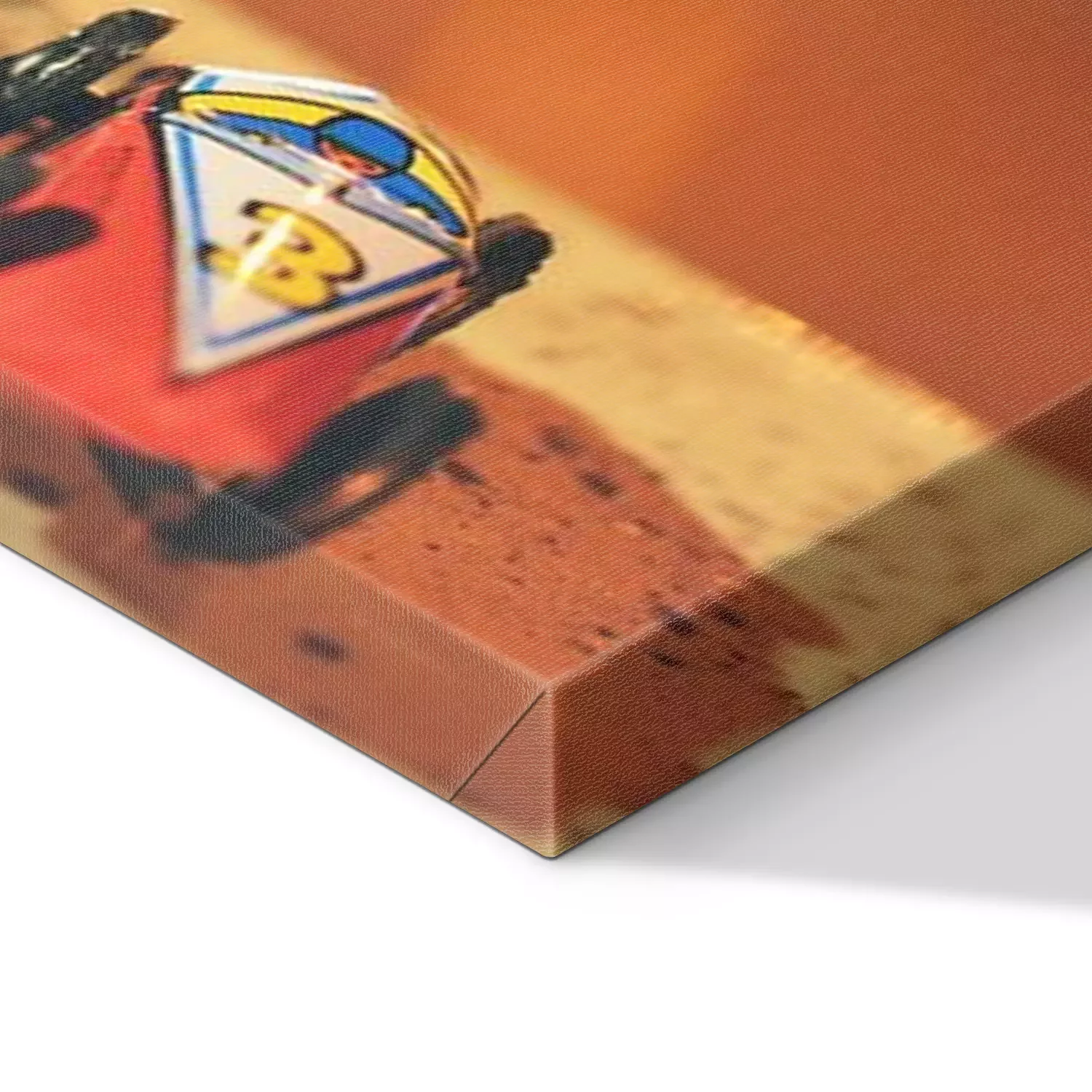 De print wordt aangebracht op hoogwaardig canvas dat op een schildersweefgetouw (spieraam) wordt gespannen. Omdat de print de zijranden bedekt, hoeft het ontwerp niet met een extra kader te worden omlijst. Wij raden ook composities aan die uit meerdere foto's bestaan en zo een coherente compositie vormen.