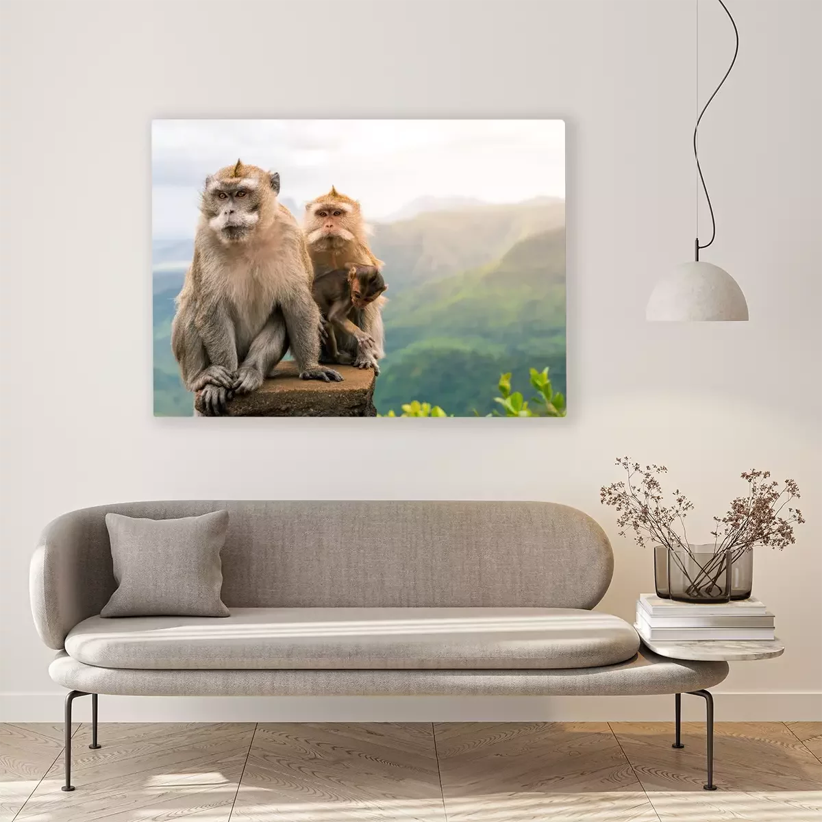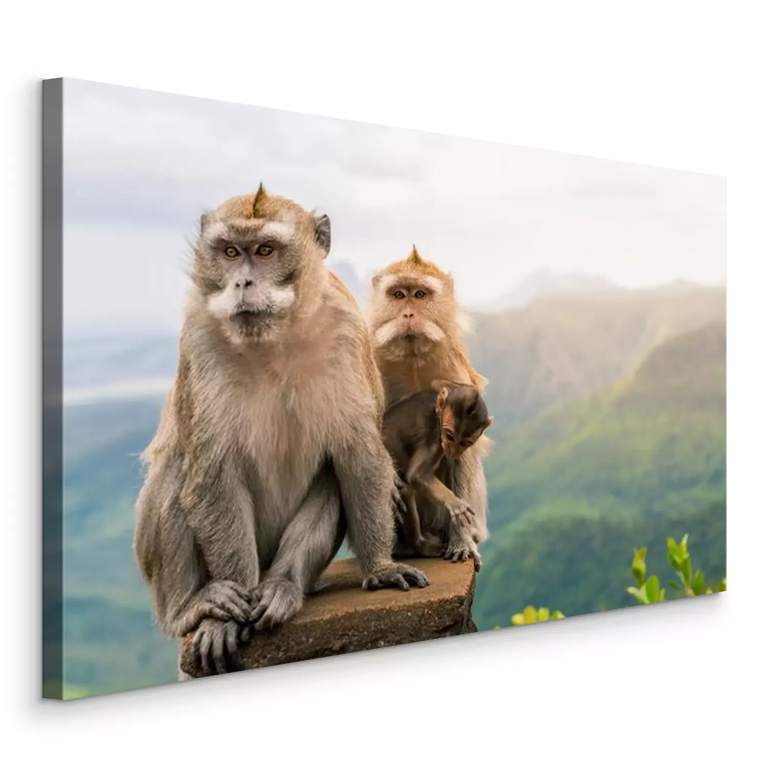 Canvas: Apenfamilie met bergpanorama op de achtergrond