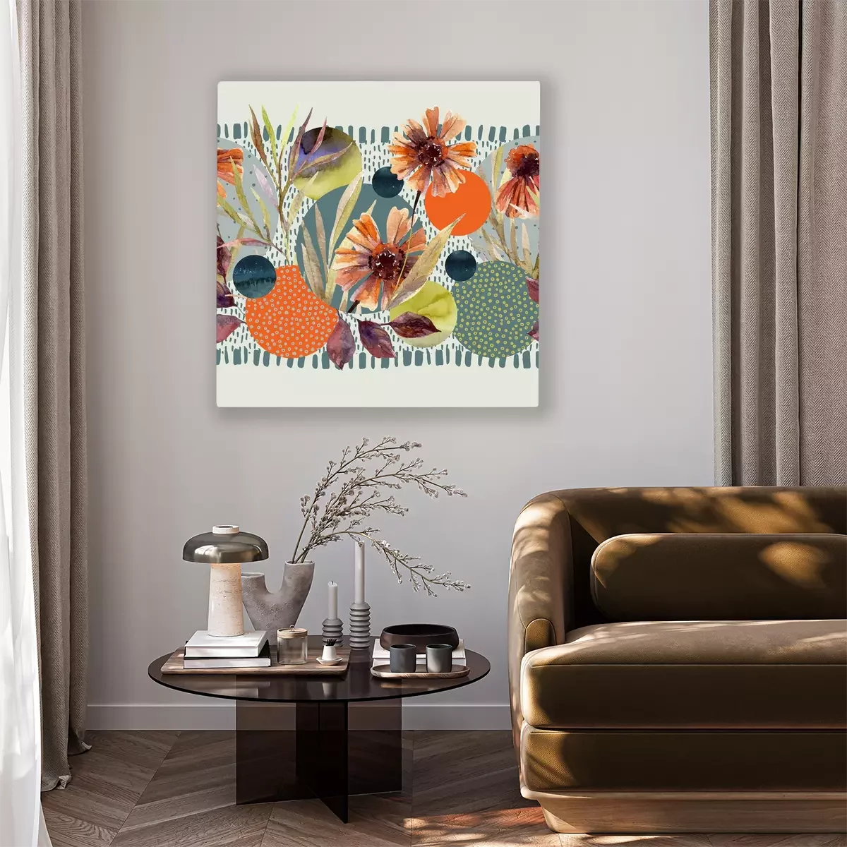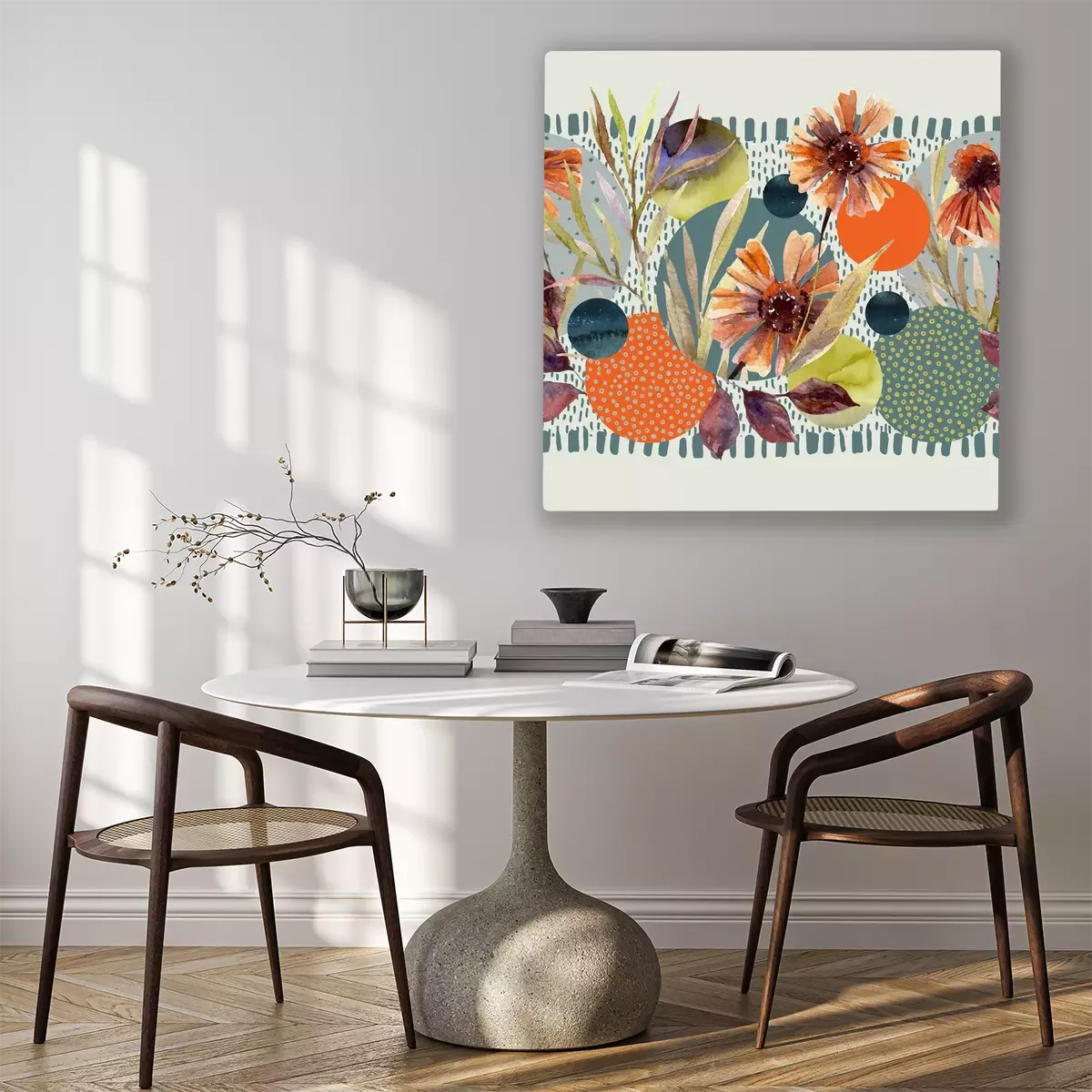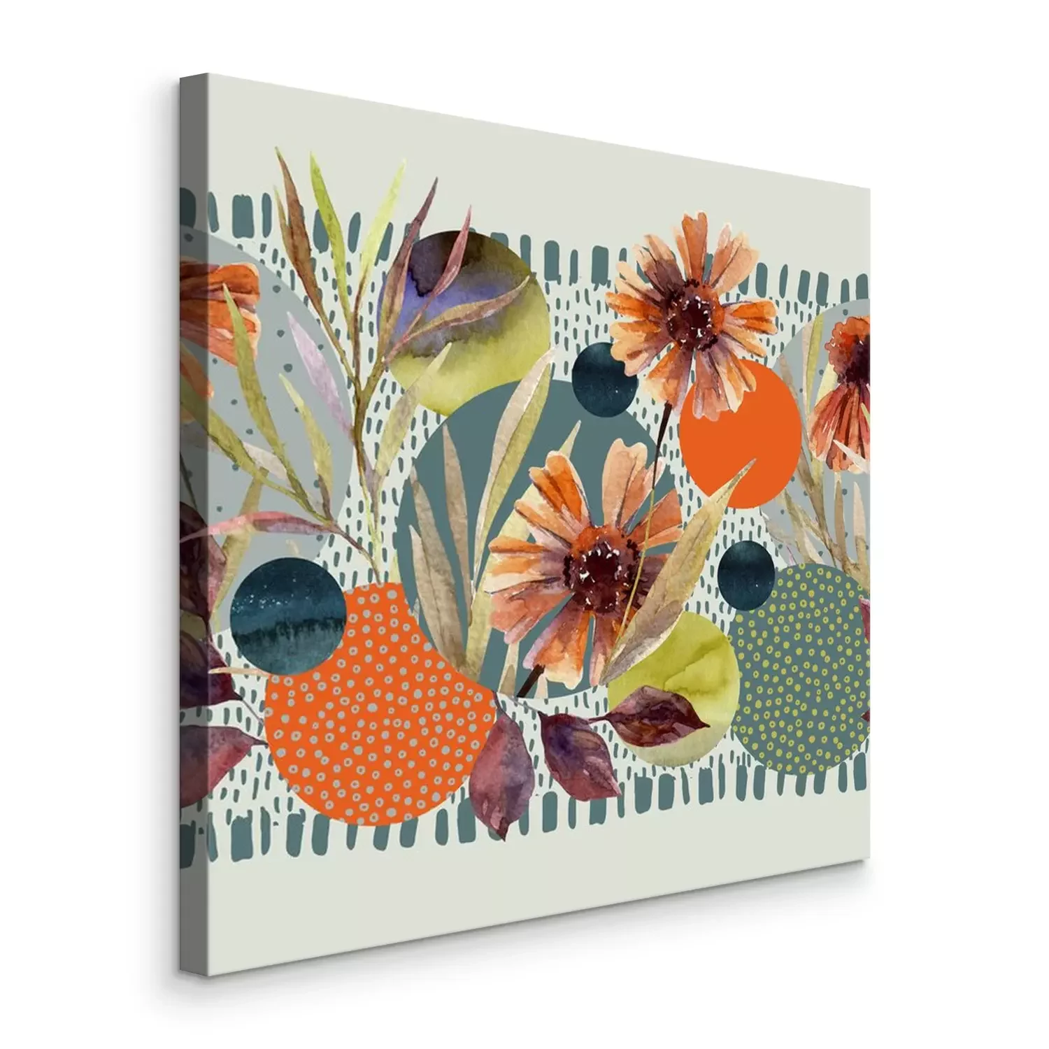 Canvas: Aquarel bloemen op de geometrische achtergrond