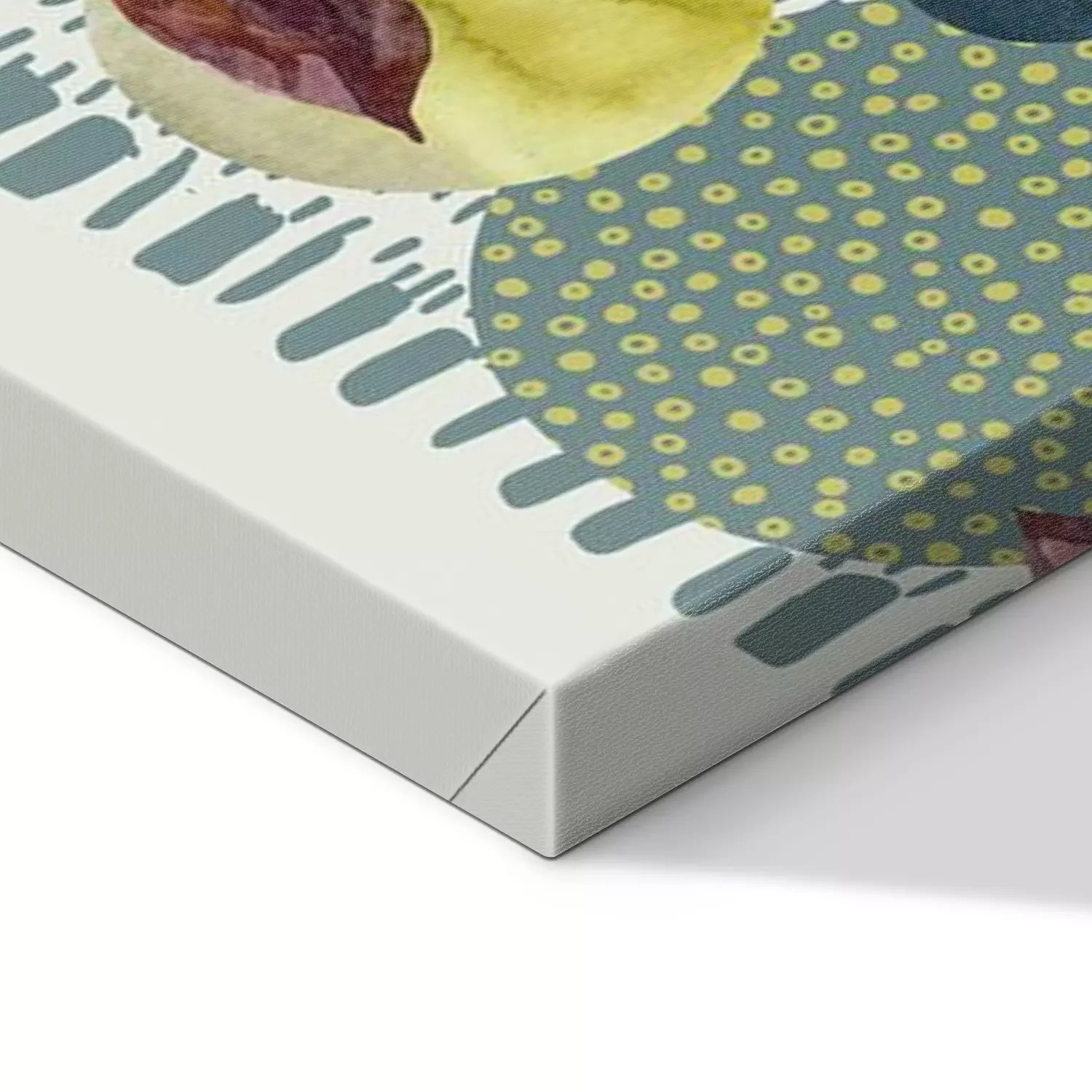 De print wordt aangebracht op hoogwaardig canvas dat op een schildersweefgetouw (spieraam) wordt gespannen. Omdat de print de zijranden bedekt, hoeft het ontwerp niet met een extra kader te worden omlijst. Wij raden ook composities aan die uit meerdere foto's bestaan en zo een coherente compositie vormen.