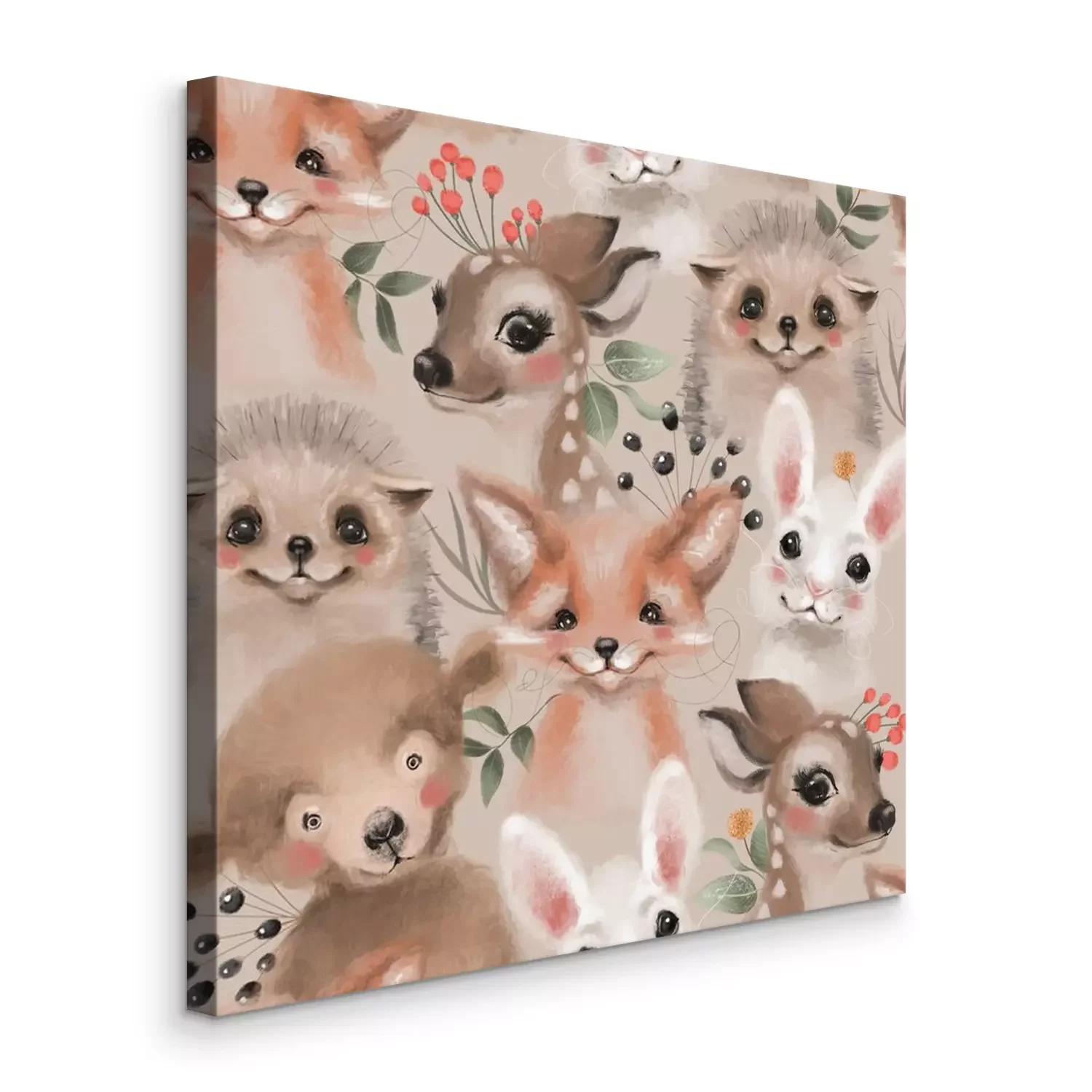Canvas Aquarel bos wilde dieren