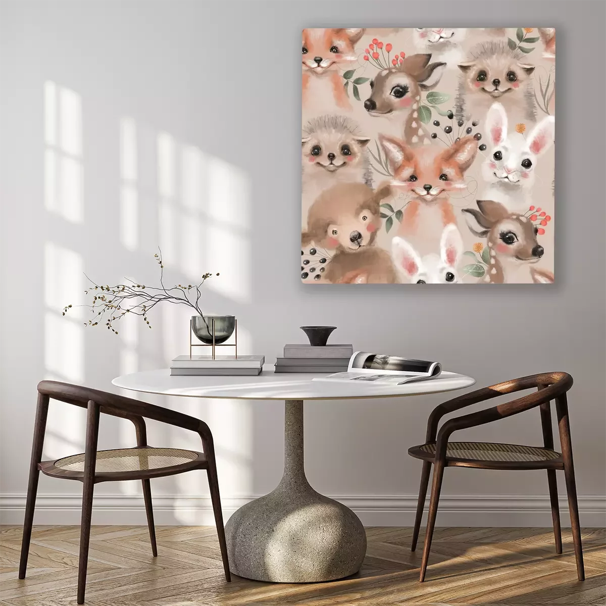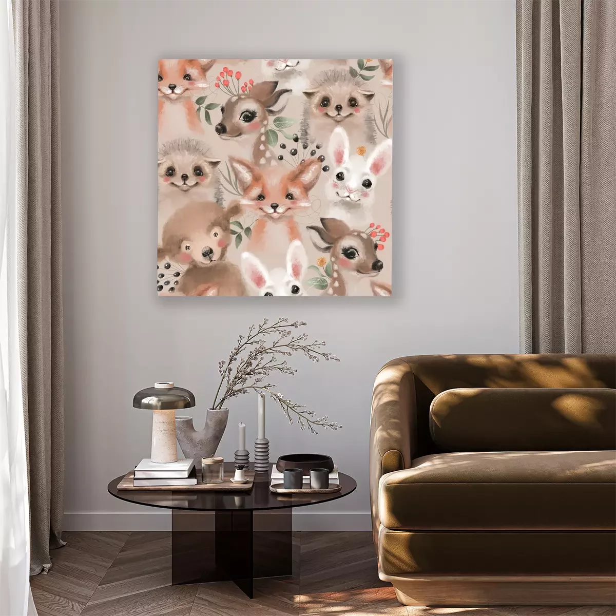 Canvas: Aquarel bos wilde dieren