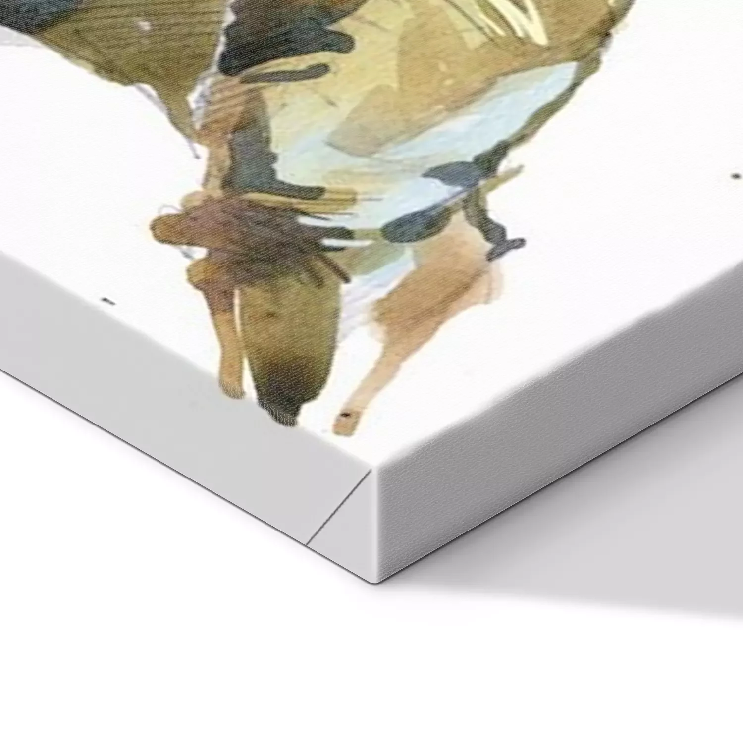 De print wordt aangebracht op hoogwaardig canvas dat op een schildersweefgetouw (spieraam) wordt gespannen. Omdat de print de zijranden bedekt, hoeft het ontwerp niet met een extra kader te worden omlijst. Wij raden ook composities aan die uit meerdere foto's bestaan en zo een coherente compositie vormen.