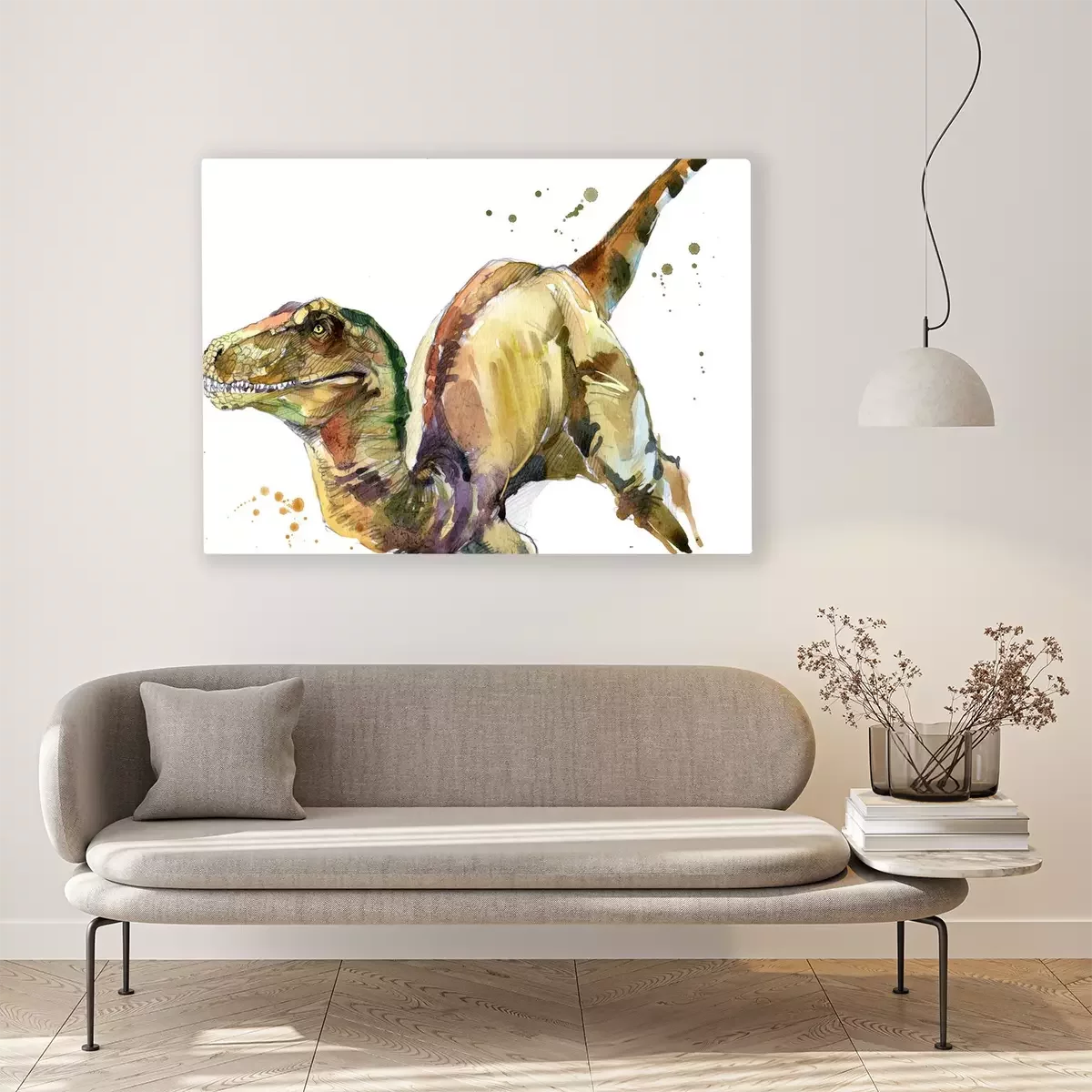Canvas: Aquarel dinosaurus op een witte achtergrond