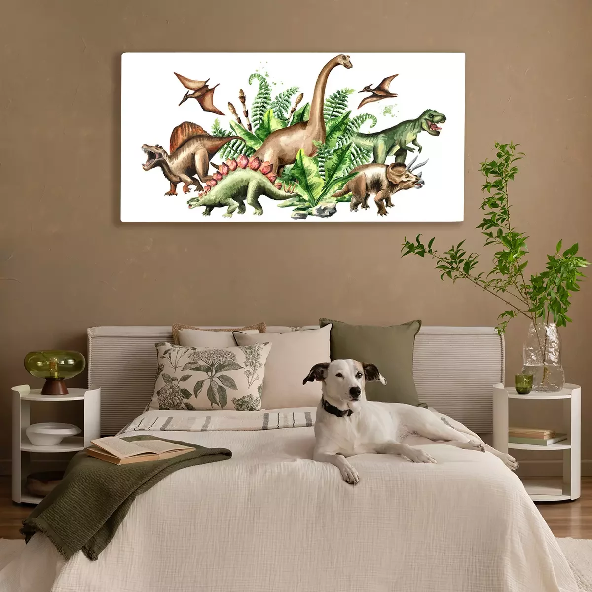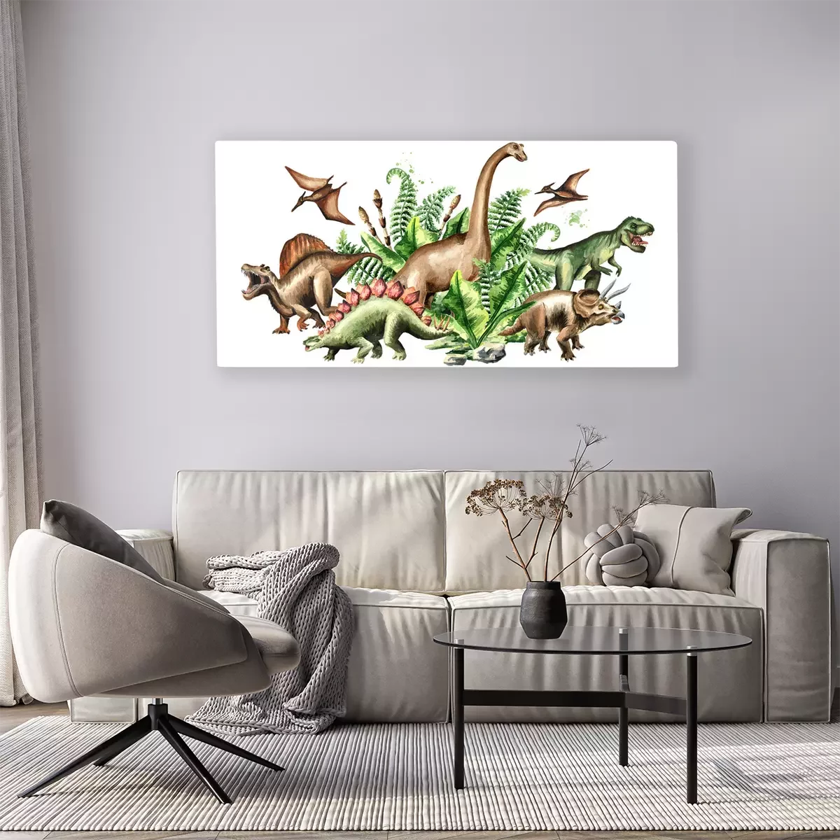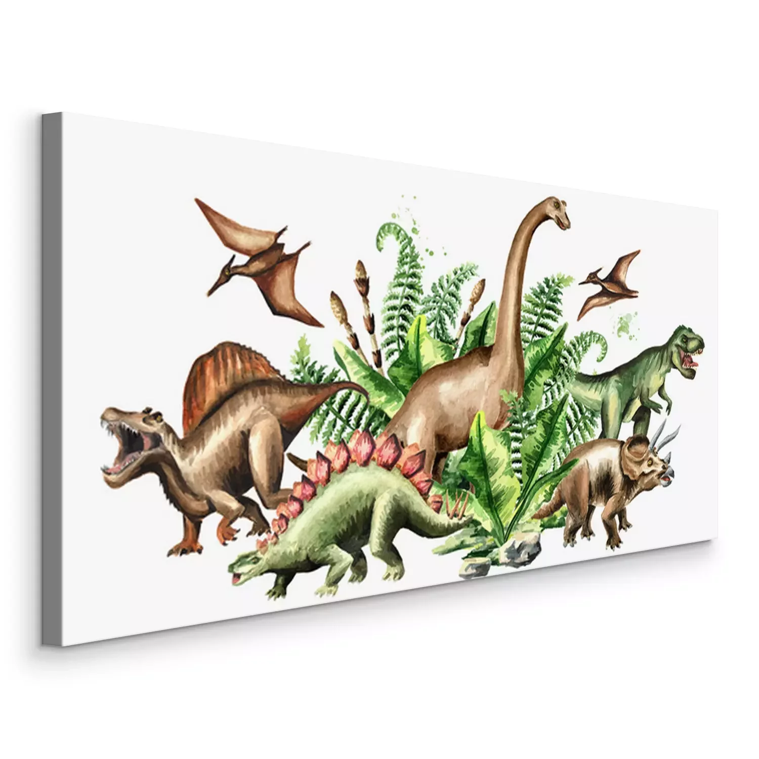 Canvas Aquarel Dinosaurussen en Prehistorische Planten
