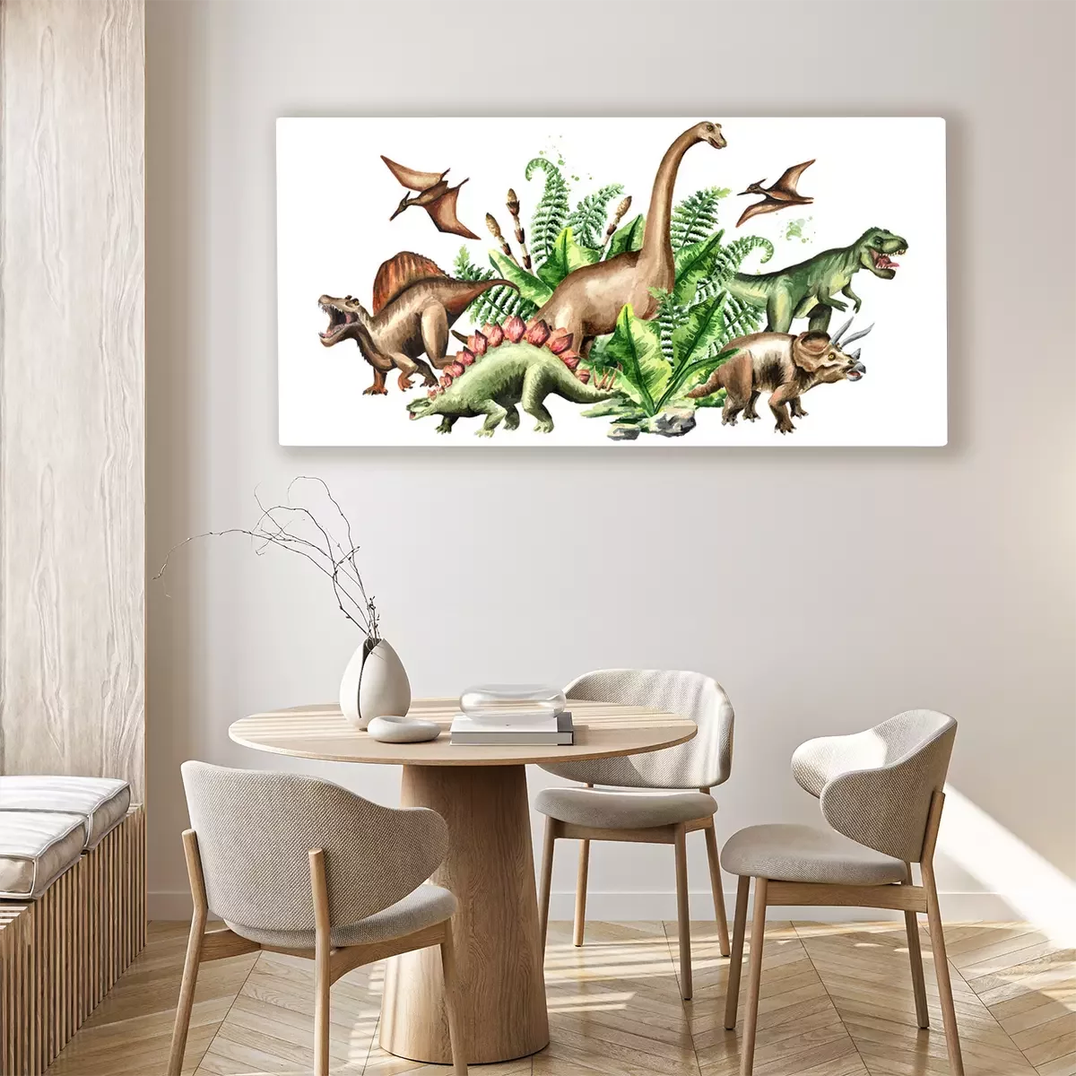 Canvas: Aquarel Dinosaurussen en Prehistorische Planten