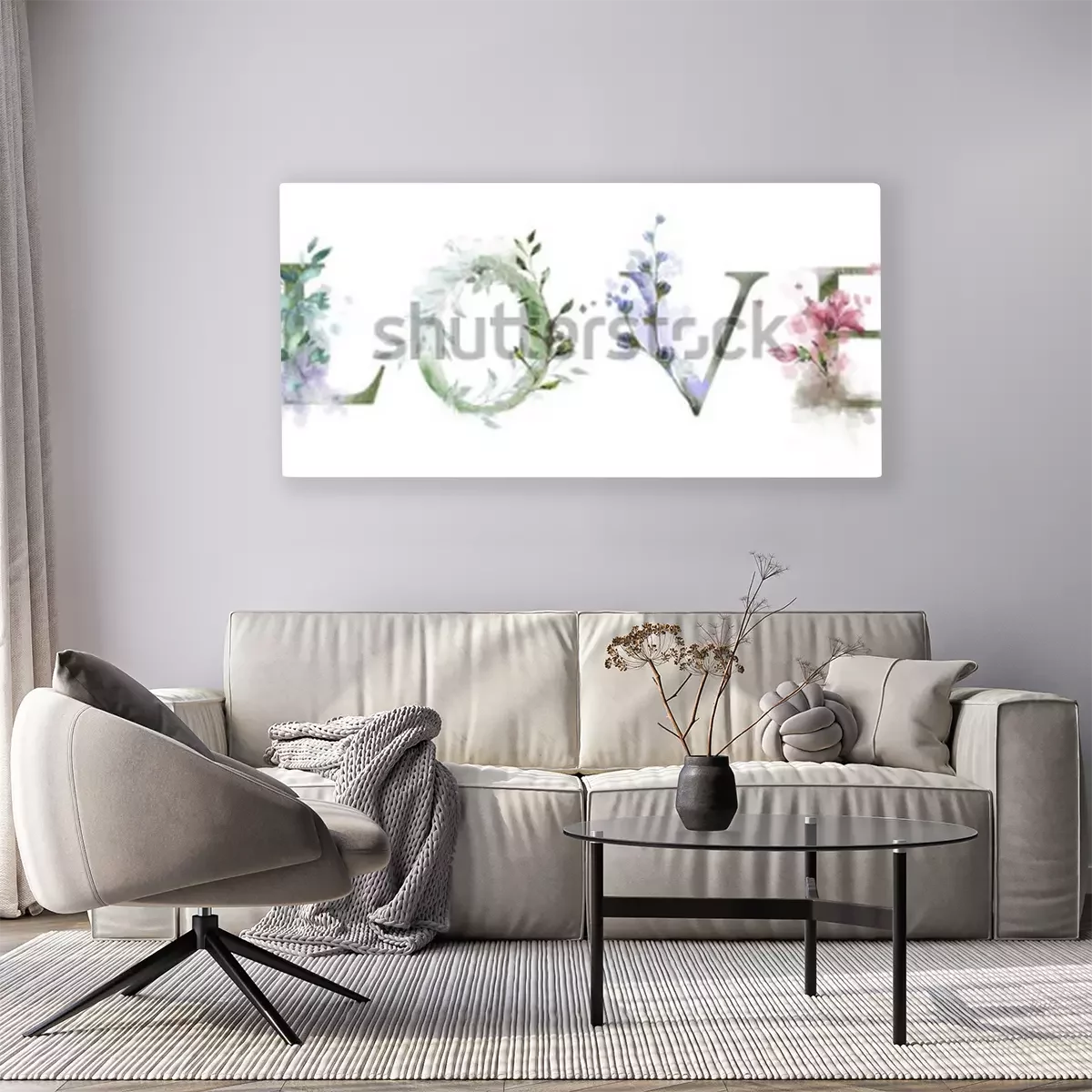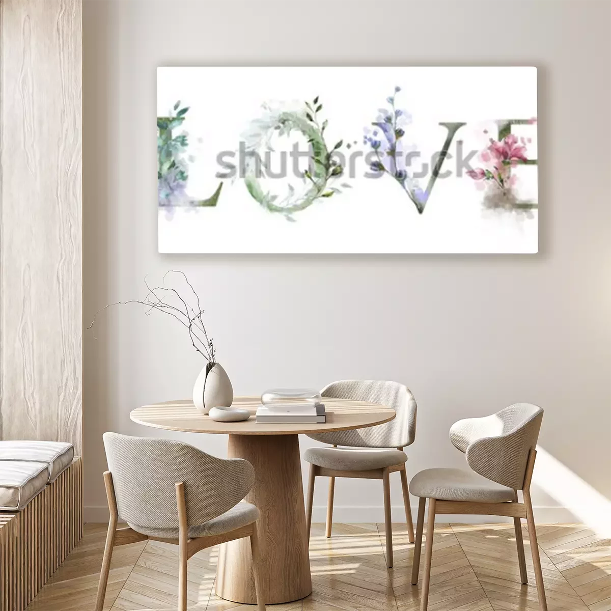Canvas: Aquarel illustratie met wilde bloemen, kruiden - Cool print op T-shirt. Wijnoogst. Belettering