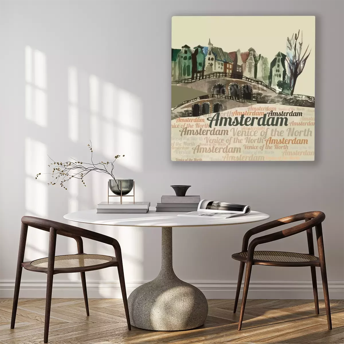 Canvas: Aquarel illustratie van Amsterdam