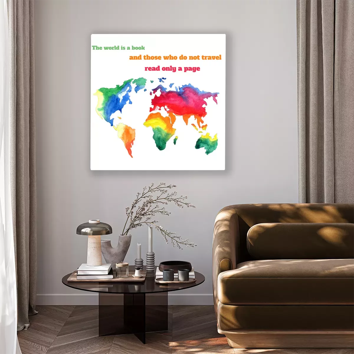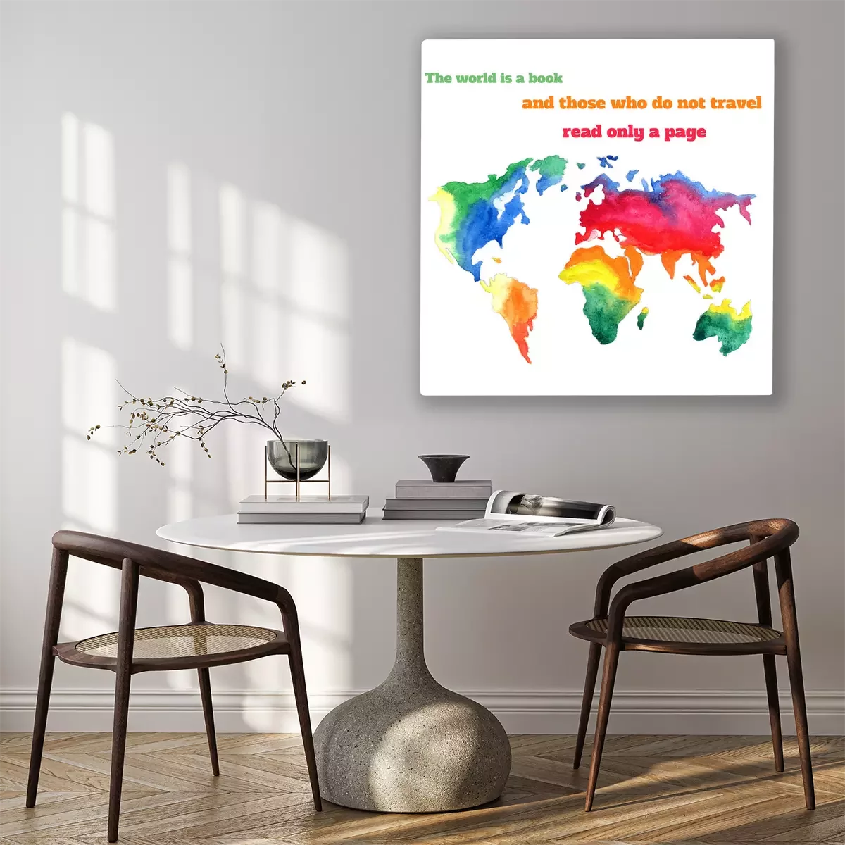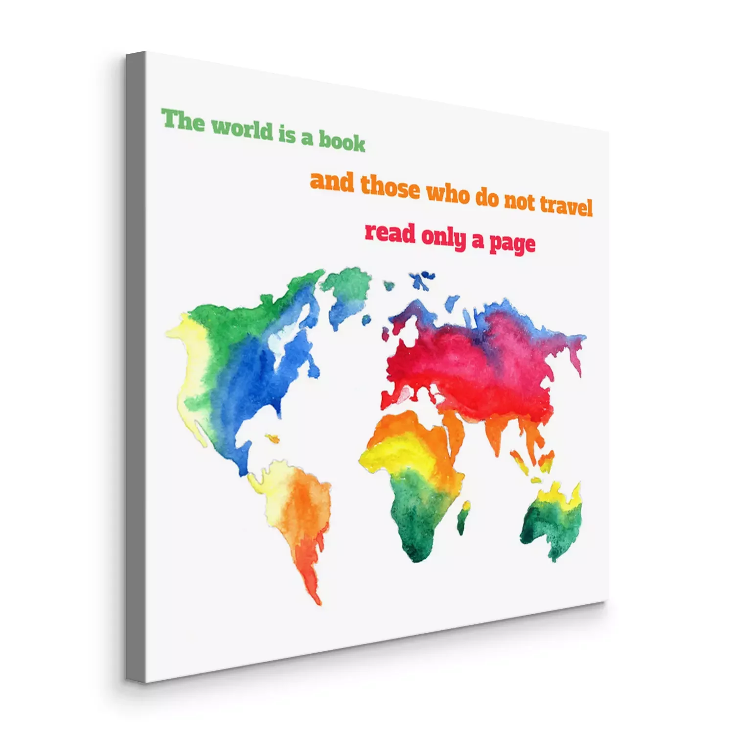 Canvas: Aquarel kleurrijke wereldkaart