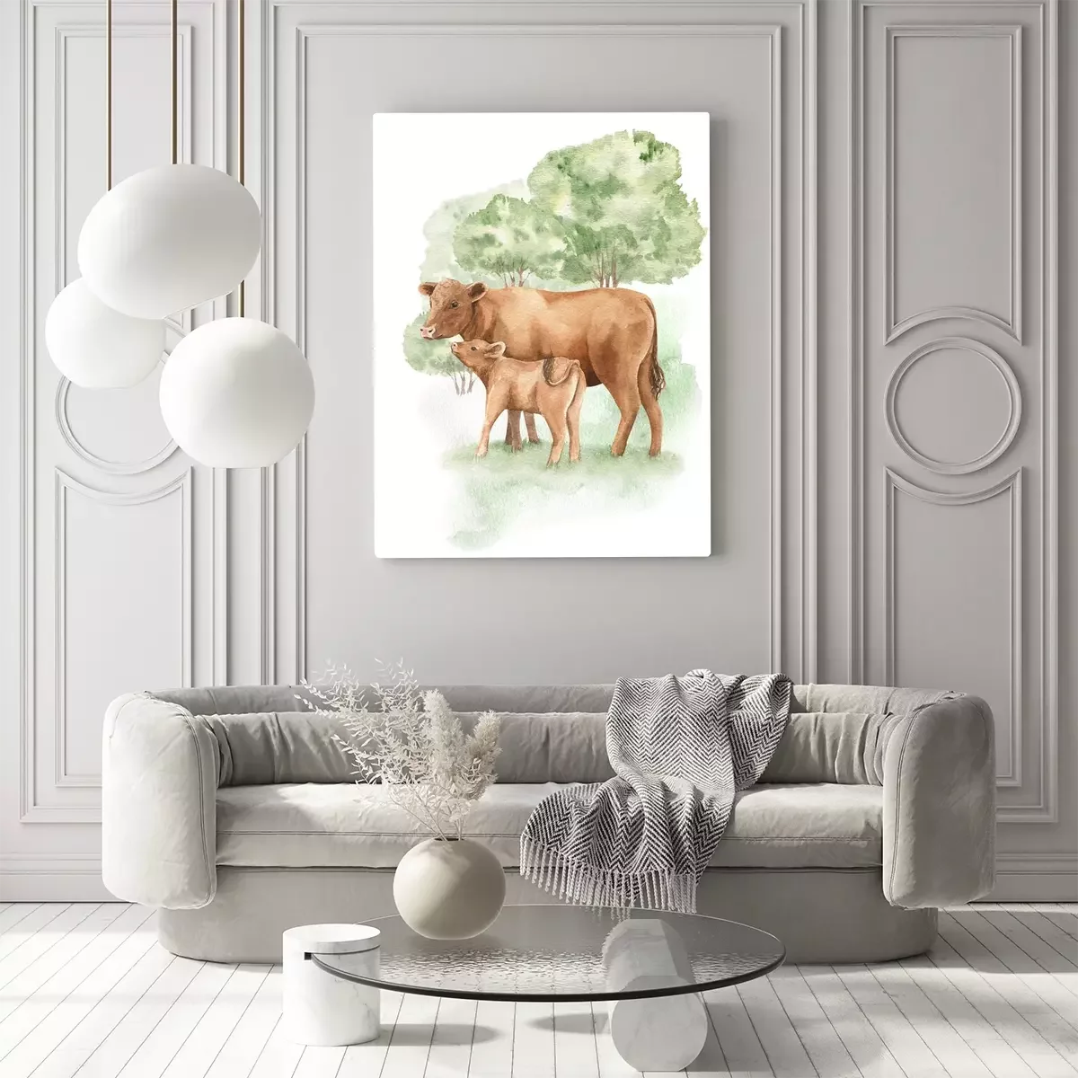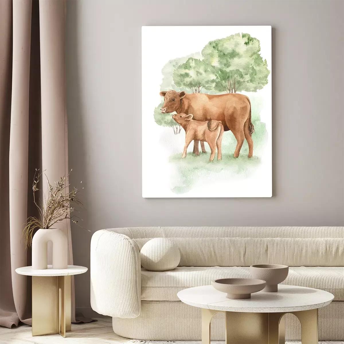Canvas: Aquarel koeien voor kinderen