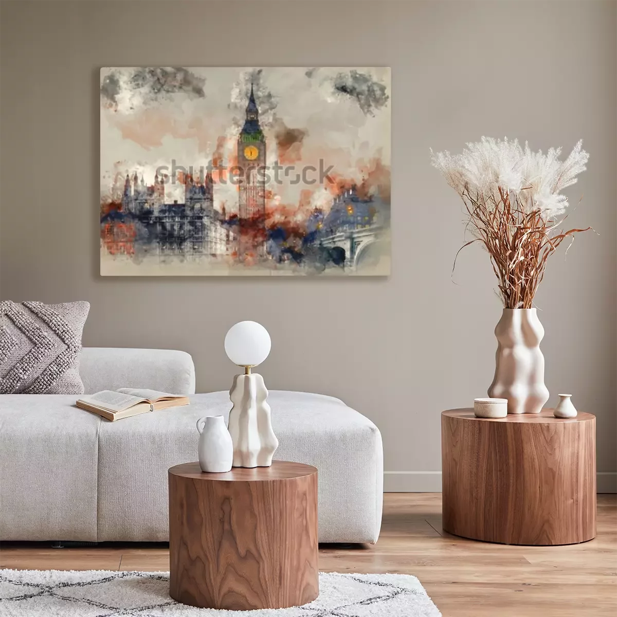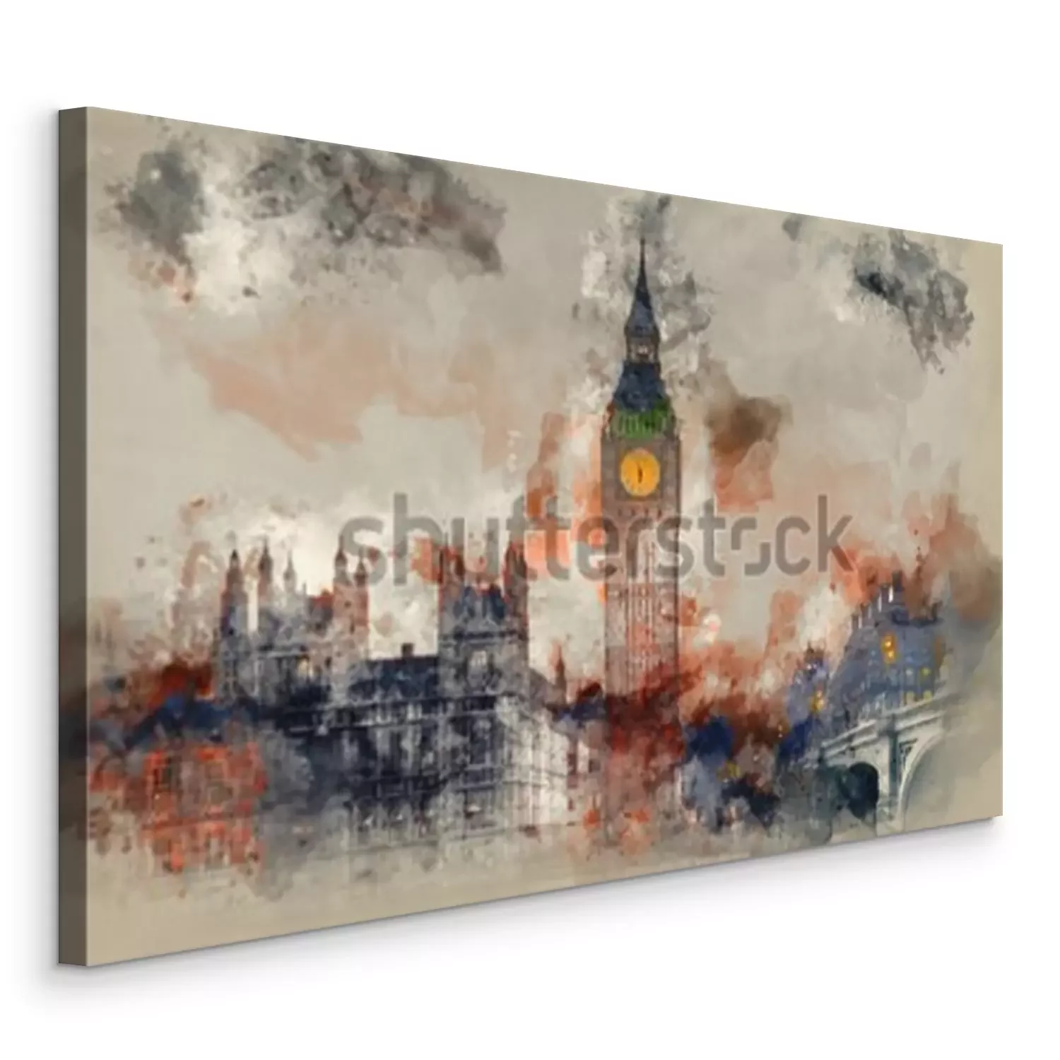 Canvas: Aquarel Londen met Big Ben en de Houses of Parliament