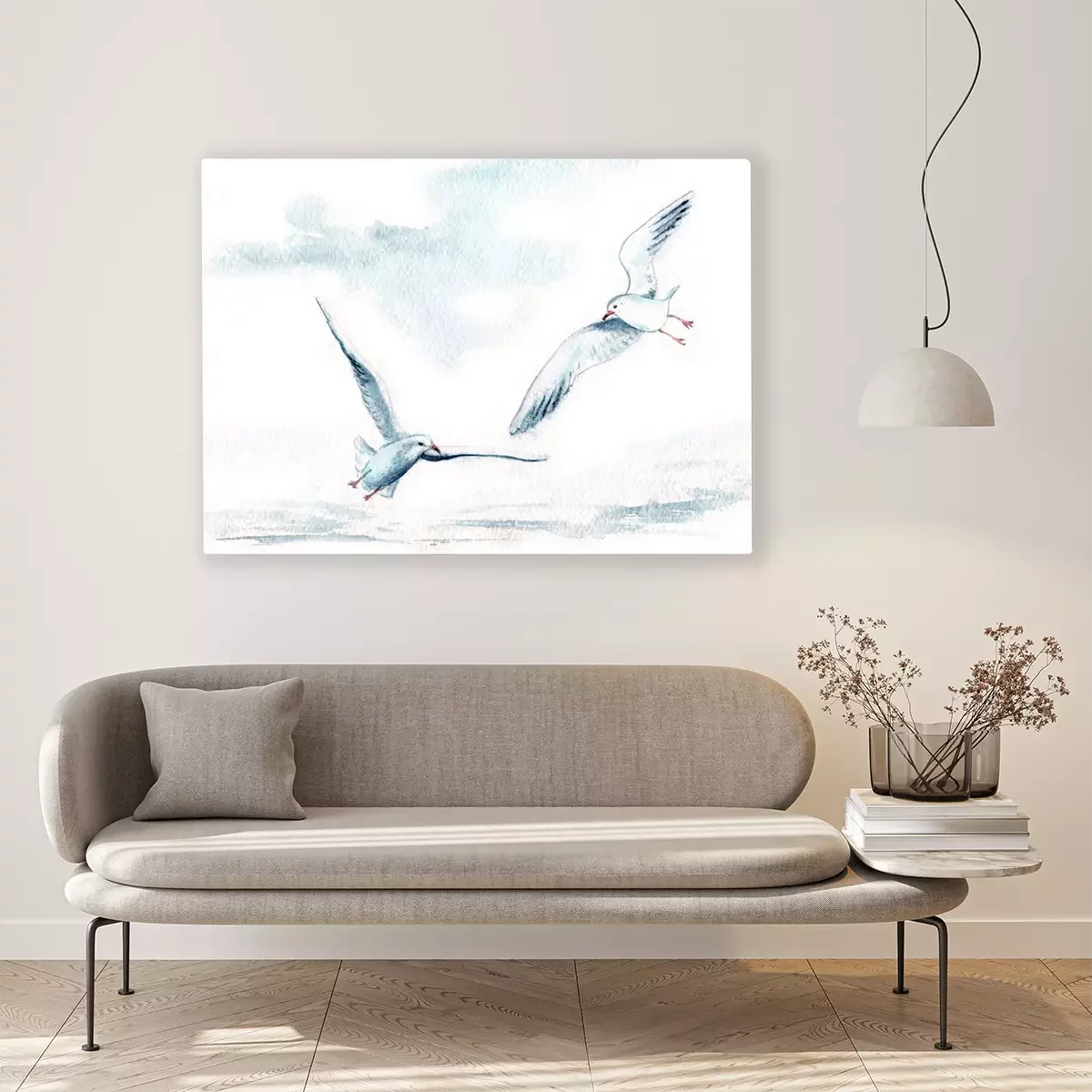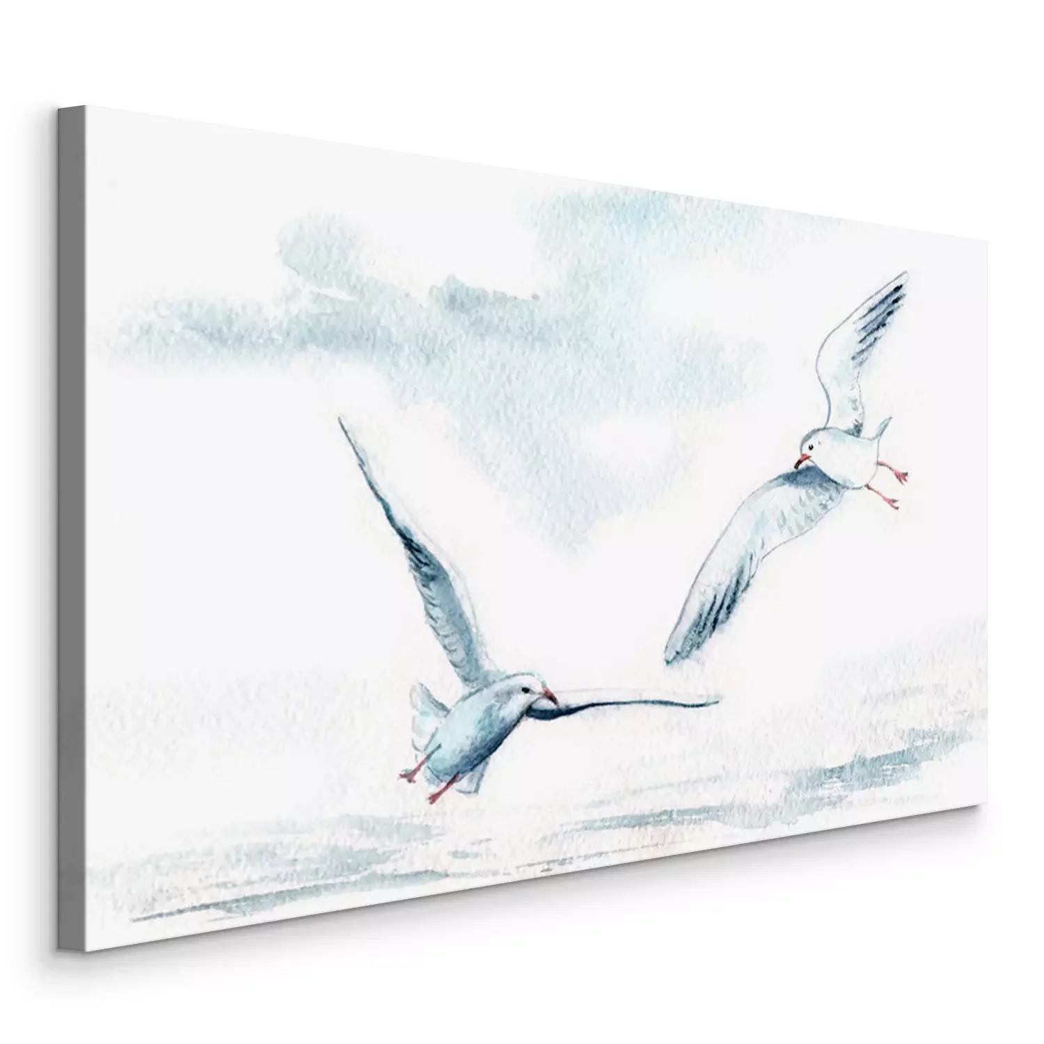 Canvas: Aquarel meeuwen tijdens de vlucht