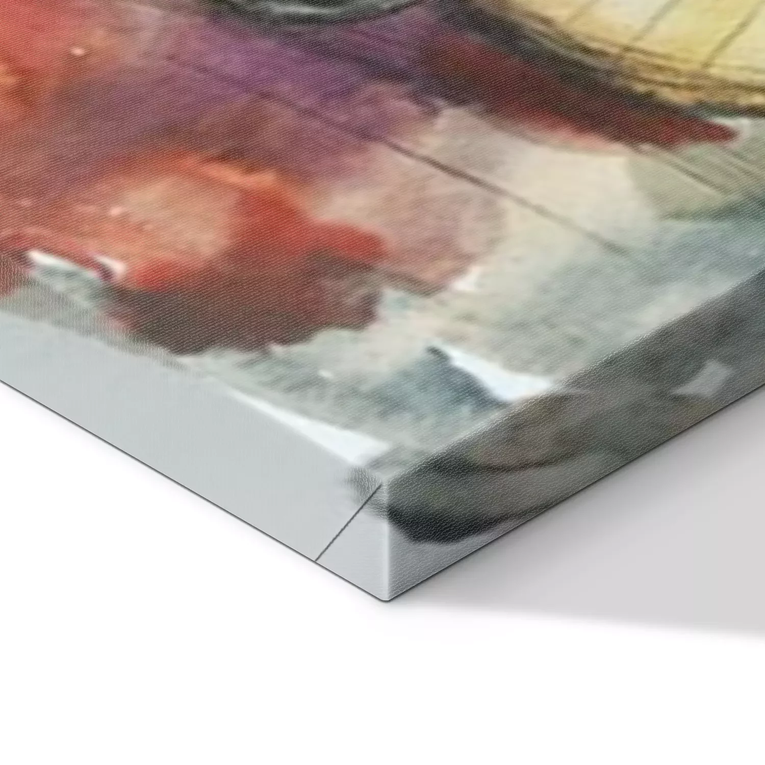 De print wordt aangebracht op hoogwaardig canvas dat op een schildersweefgetouw (spieraam) wordt gespannen. Omdat de print de zijranden bedekt, hoeft het ontwerp niet met een extra kader te worden omlijst. Wij raden ook composities aan die uit meerdere foto's bestaan en zo een coherente compositie vormen.