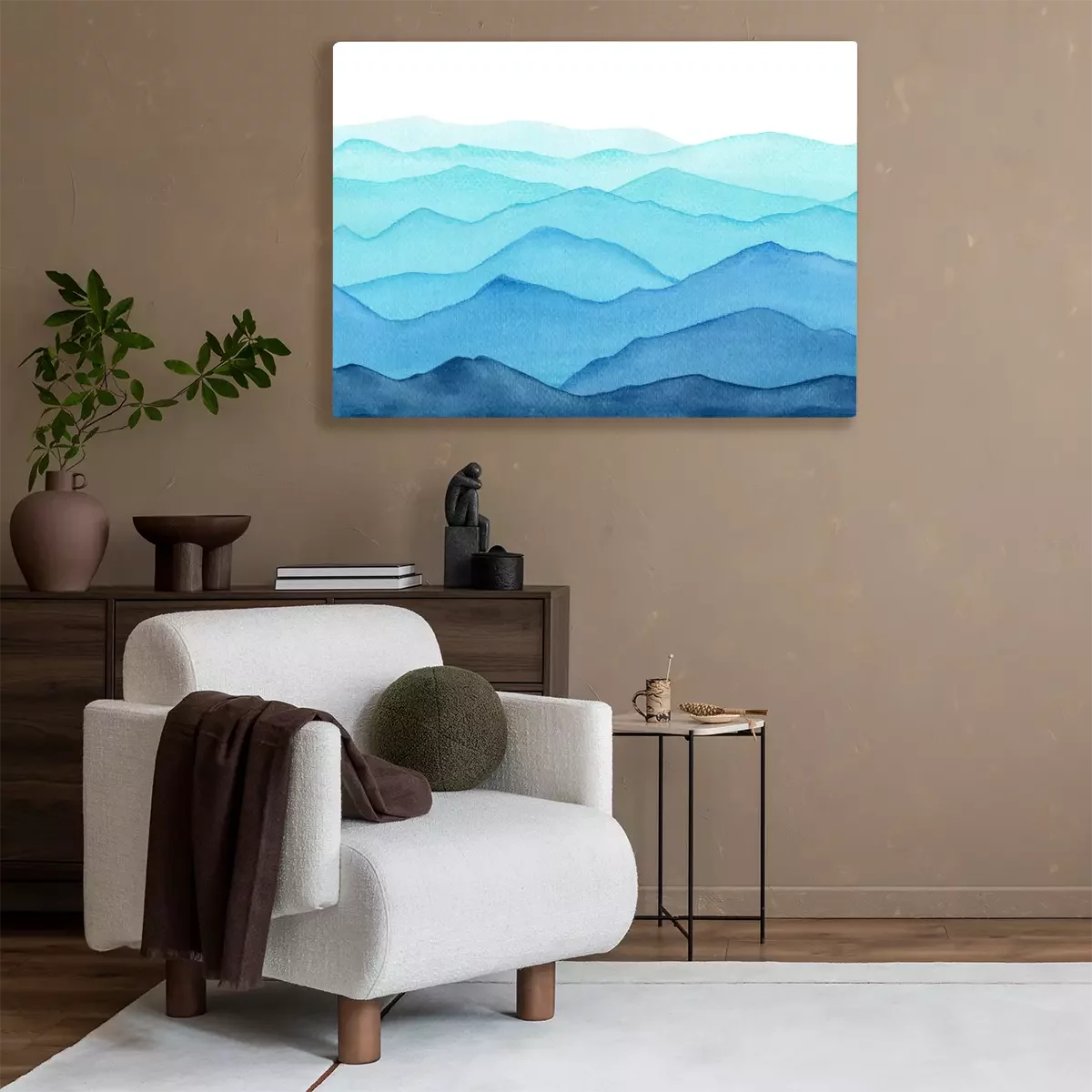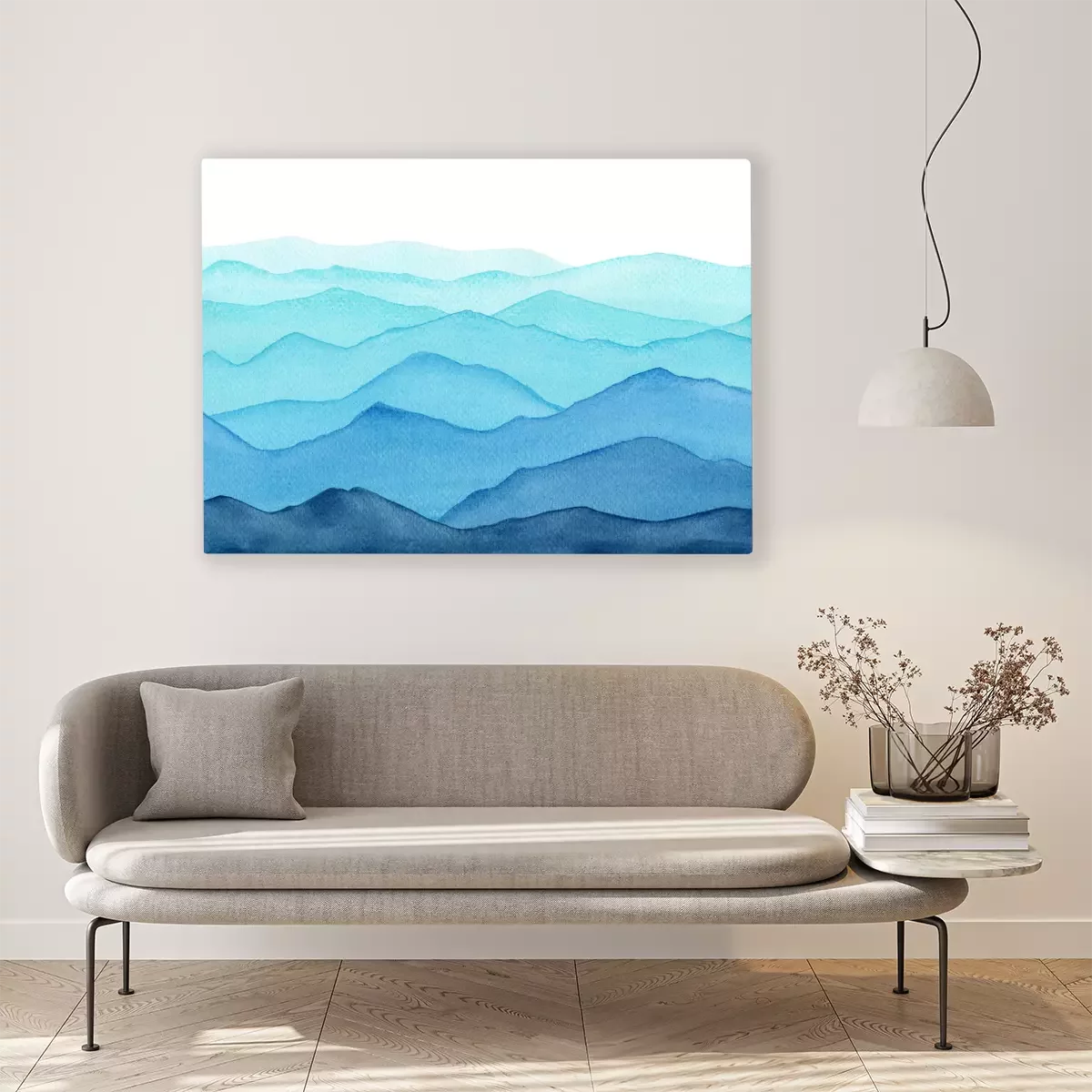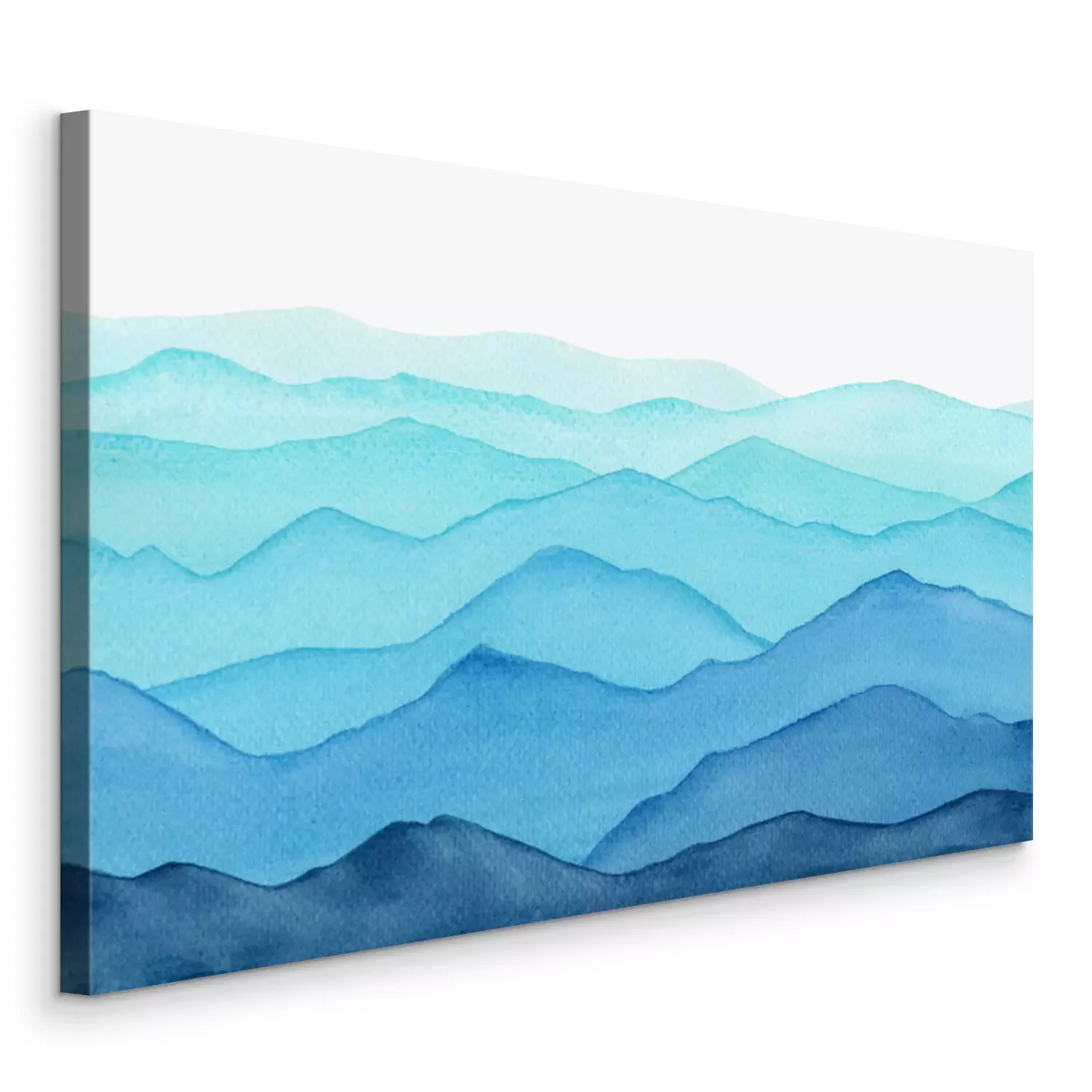 abstract indigo blue watercolor waves mountains on white background