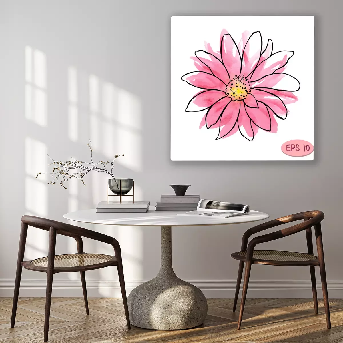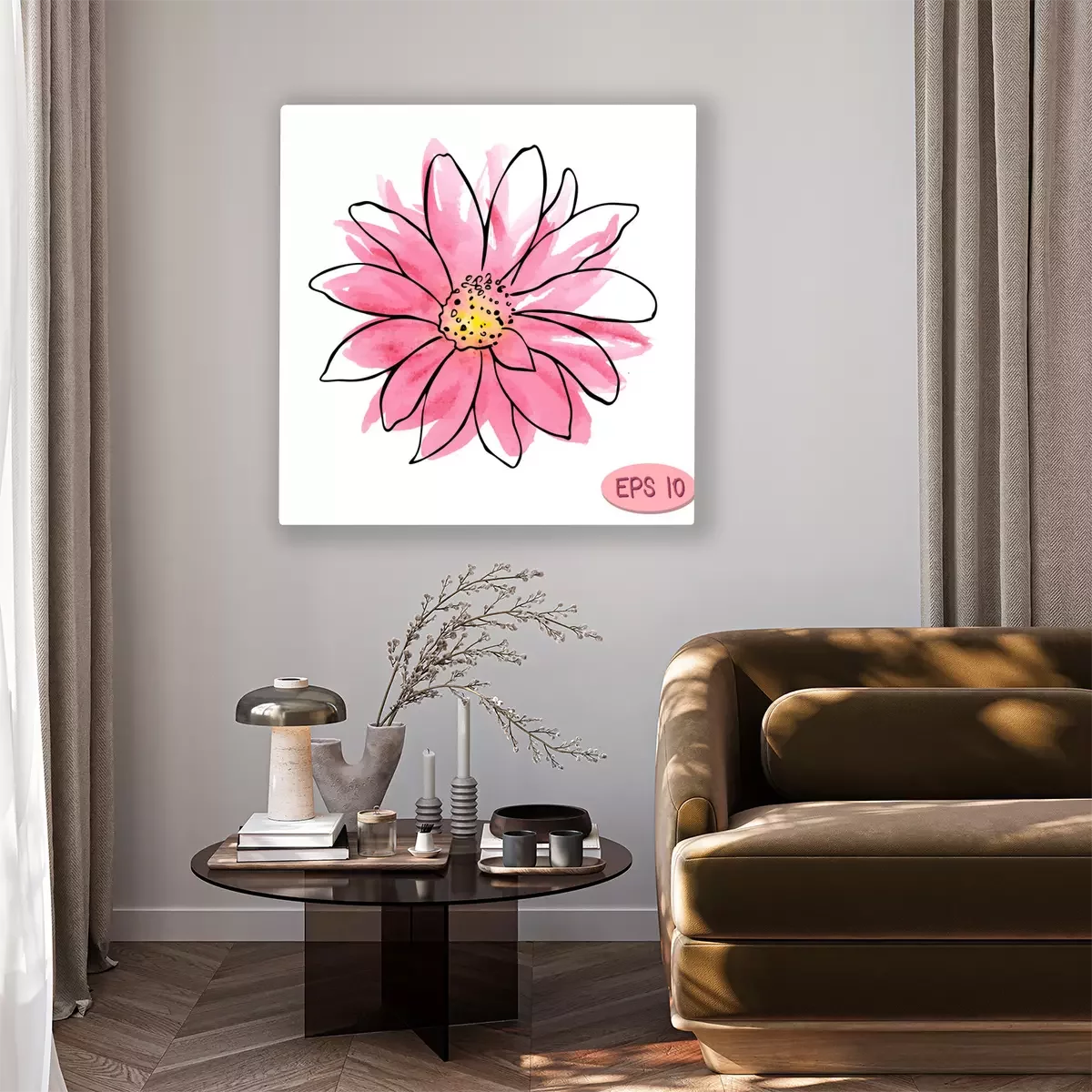 Canvas: aquarel vector bloem illustratie, roze bloem als madeliefje of chrysanthemum met plack contour