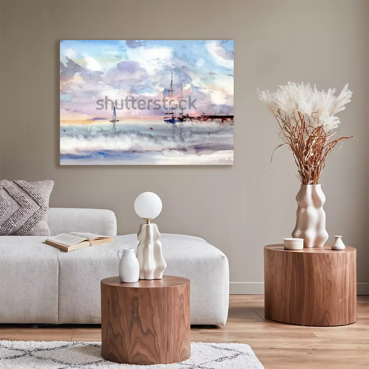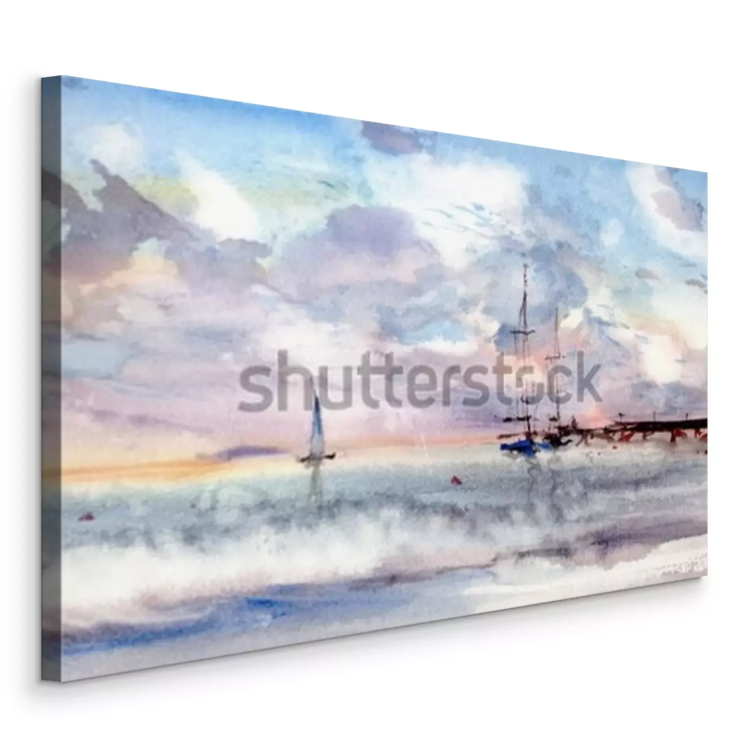 Canvas Aquarel zee en haven