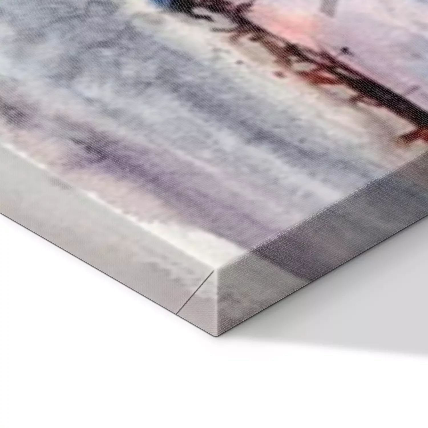 De print wordt aangebracht op hoogwaardig canvas dat op een schildersweefgetouw (spieraam) wordt gespannen. Omdat de print de zijranden bedekt, hoeft het ontwerp niet met een extra kader te worden omlijst. Wij raden ook composities aan die uit meerdere foto's bestaan en zo een coherente compositie vormen.