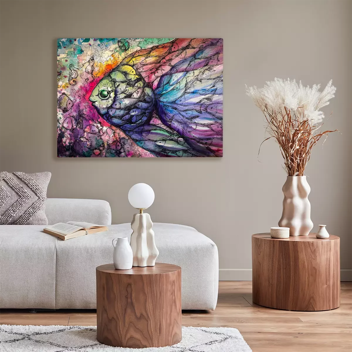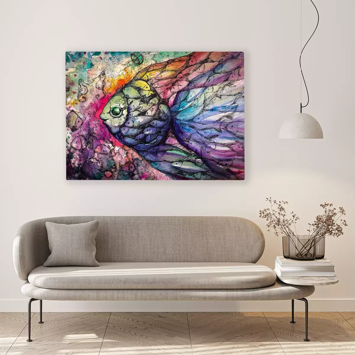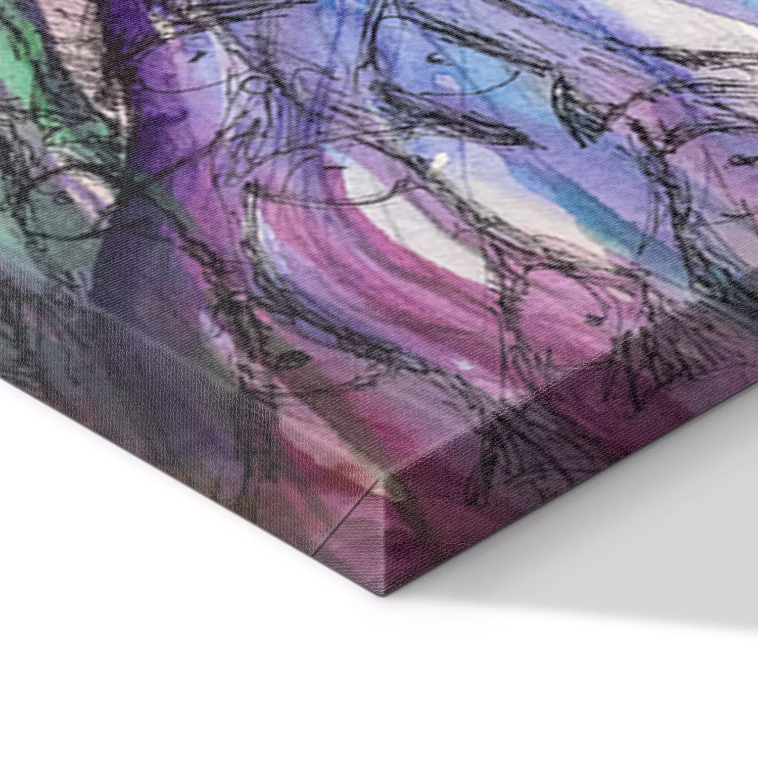 De print wordt aangebracht op hoogwaardig canvas dat op een schildersweefgetouw (spieraam) wordt gespannen. Omdat de print de zijranden bedekt, hoeft het ontwerp niet met een extra kader te worden omlijst. Wij raden ook composities aan die uit meerdere foto's bestaan en zo een coherente compositie vormen.