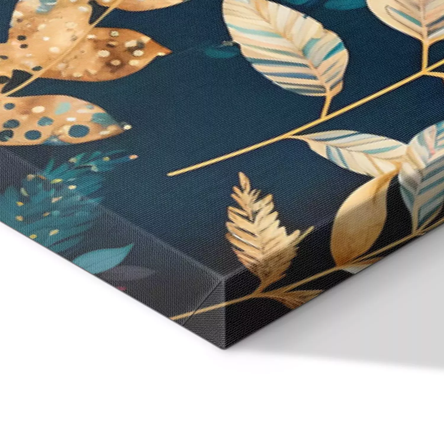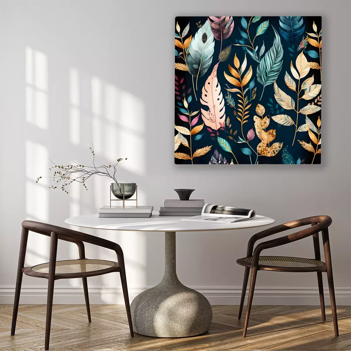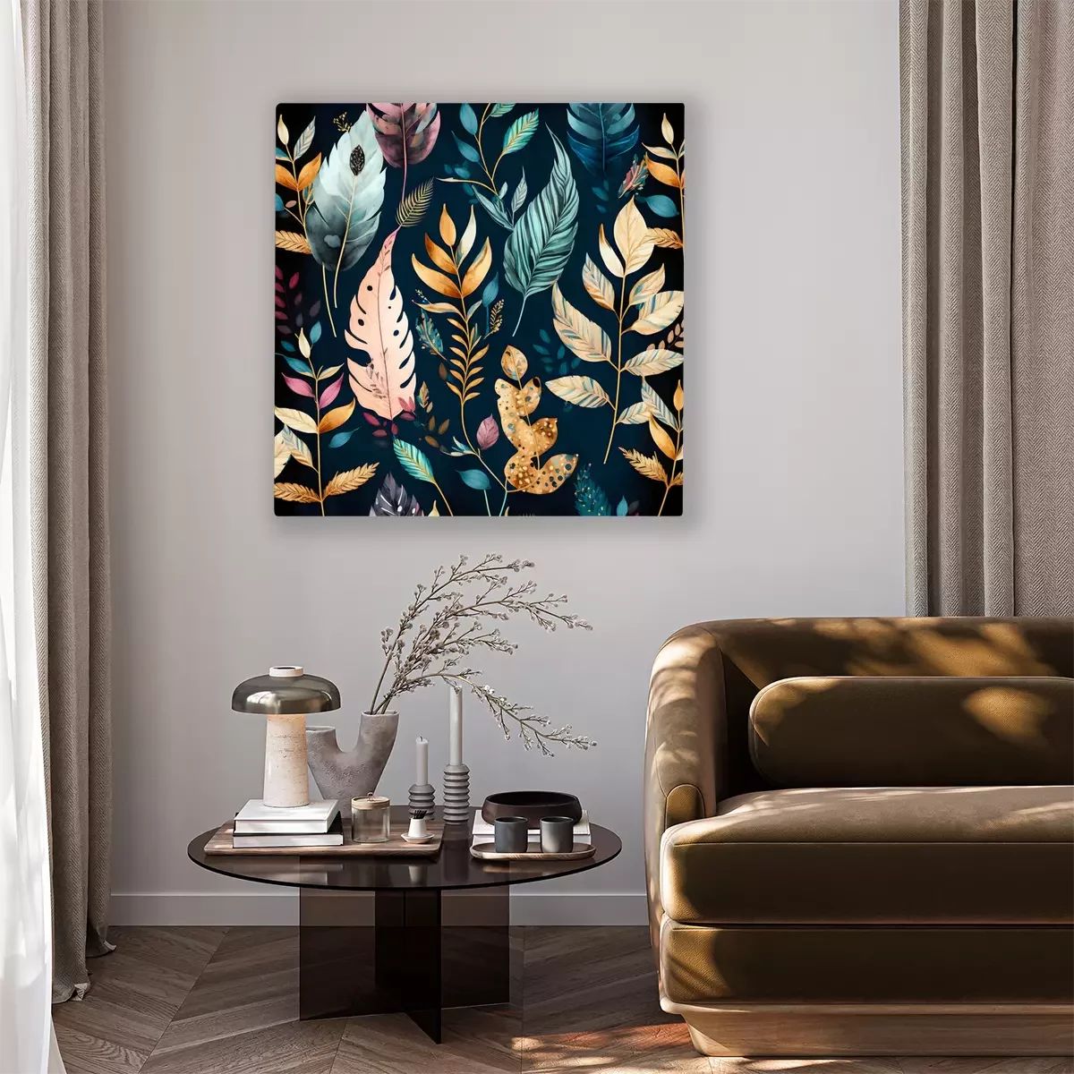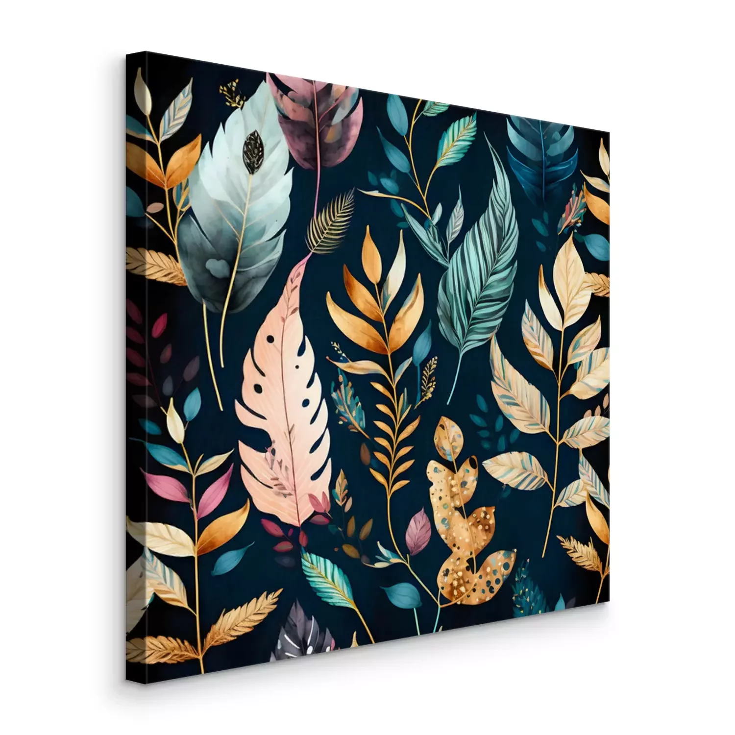 Canvas: Aquarelbladeren op een donkere achtergrond