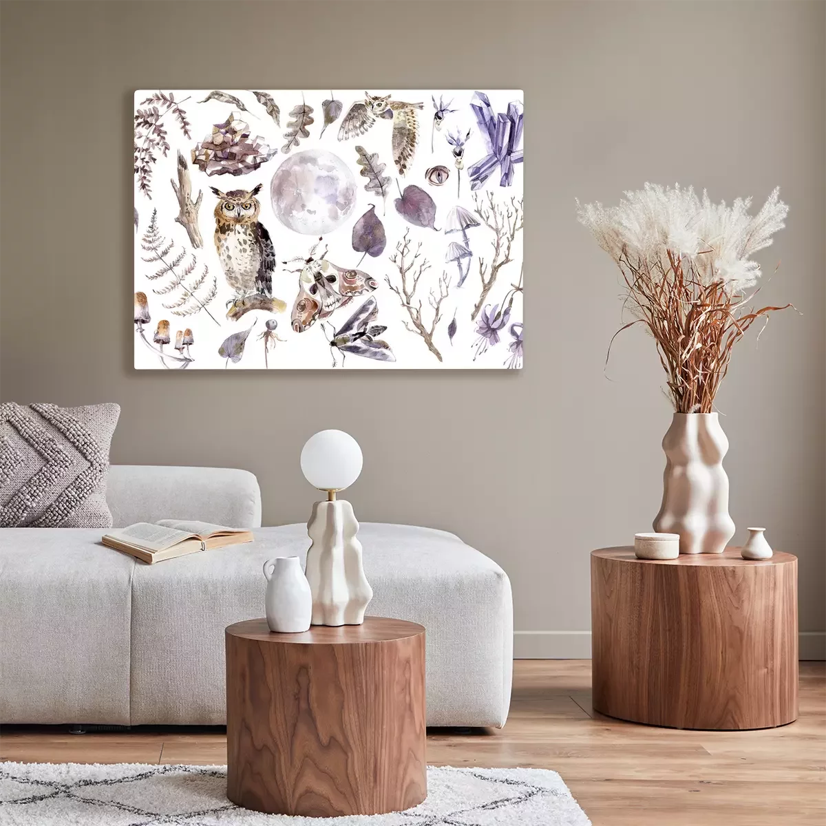 Canvas: Aquarelcollage met een uil
