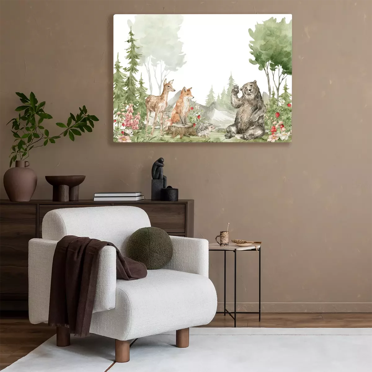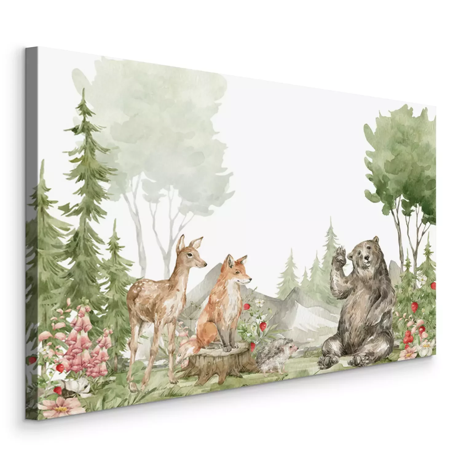 Canvas Aquarellandschap van bosdieren in de natuur
