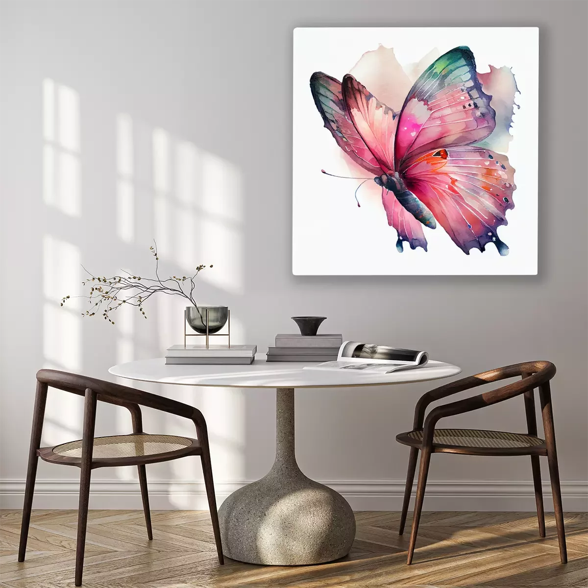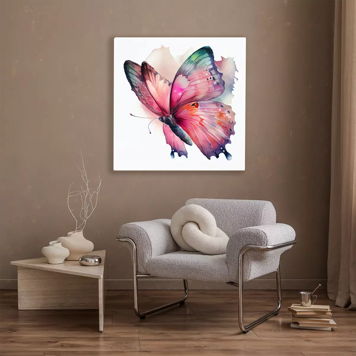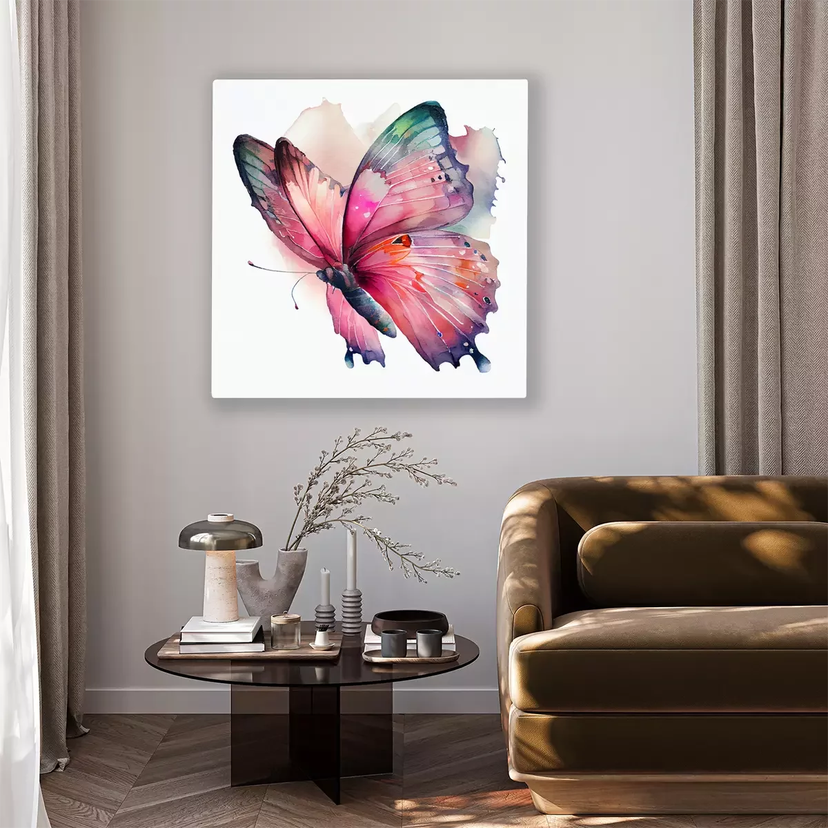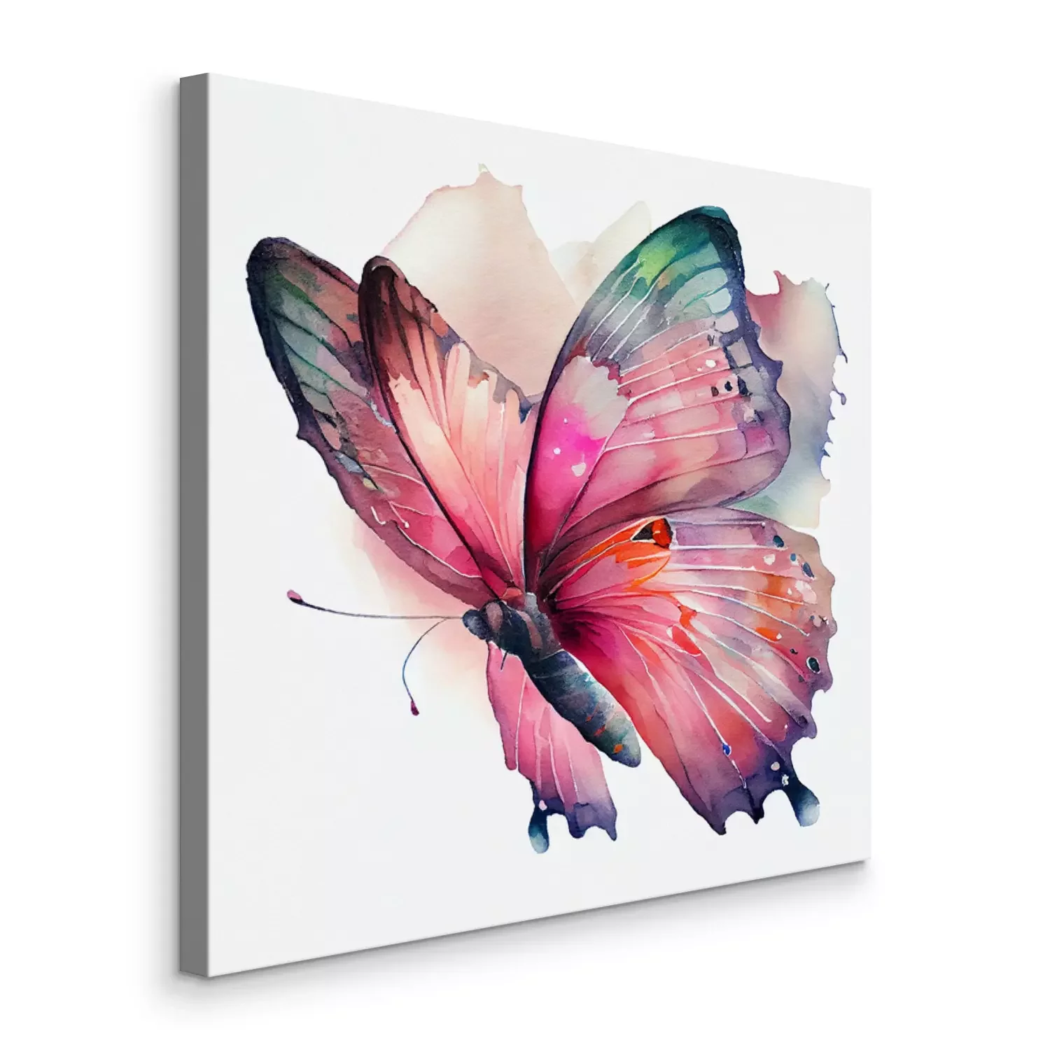 Canvas: Aquarelvlinder in roze en groene kleuren
