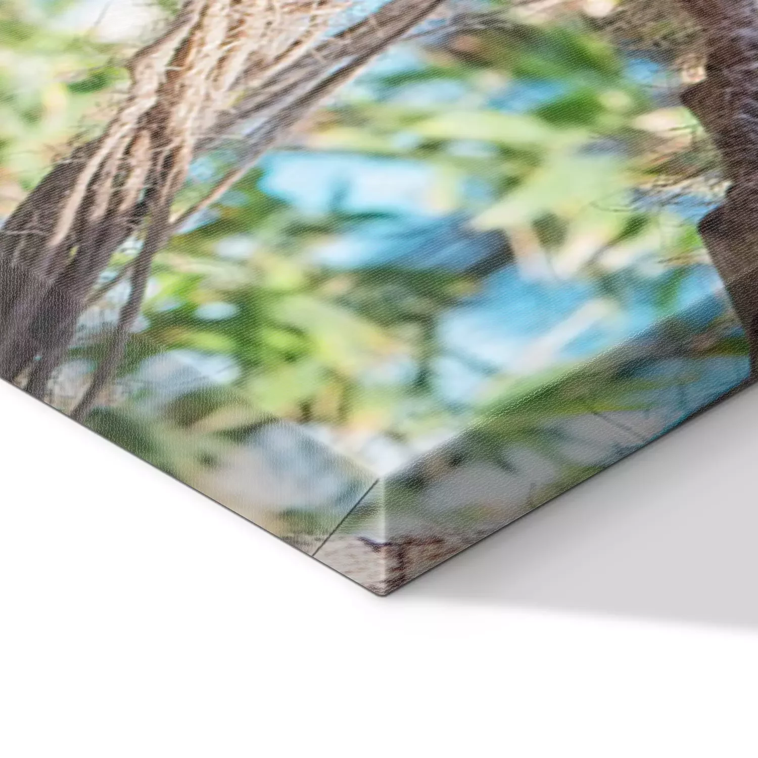 De print wordt aangebracht op hoogwaardig canvas dat op een schildersweefgetouw (spieraam) wordt gespannen. Omdat de print de zijranden bedekt, hoeft het ontwerp niet met een extra kader te worden omlijst. Wij raden ook composities aan die uit meerdere foto's bestaan en zo een coherente compositie vormen.
