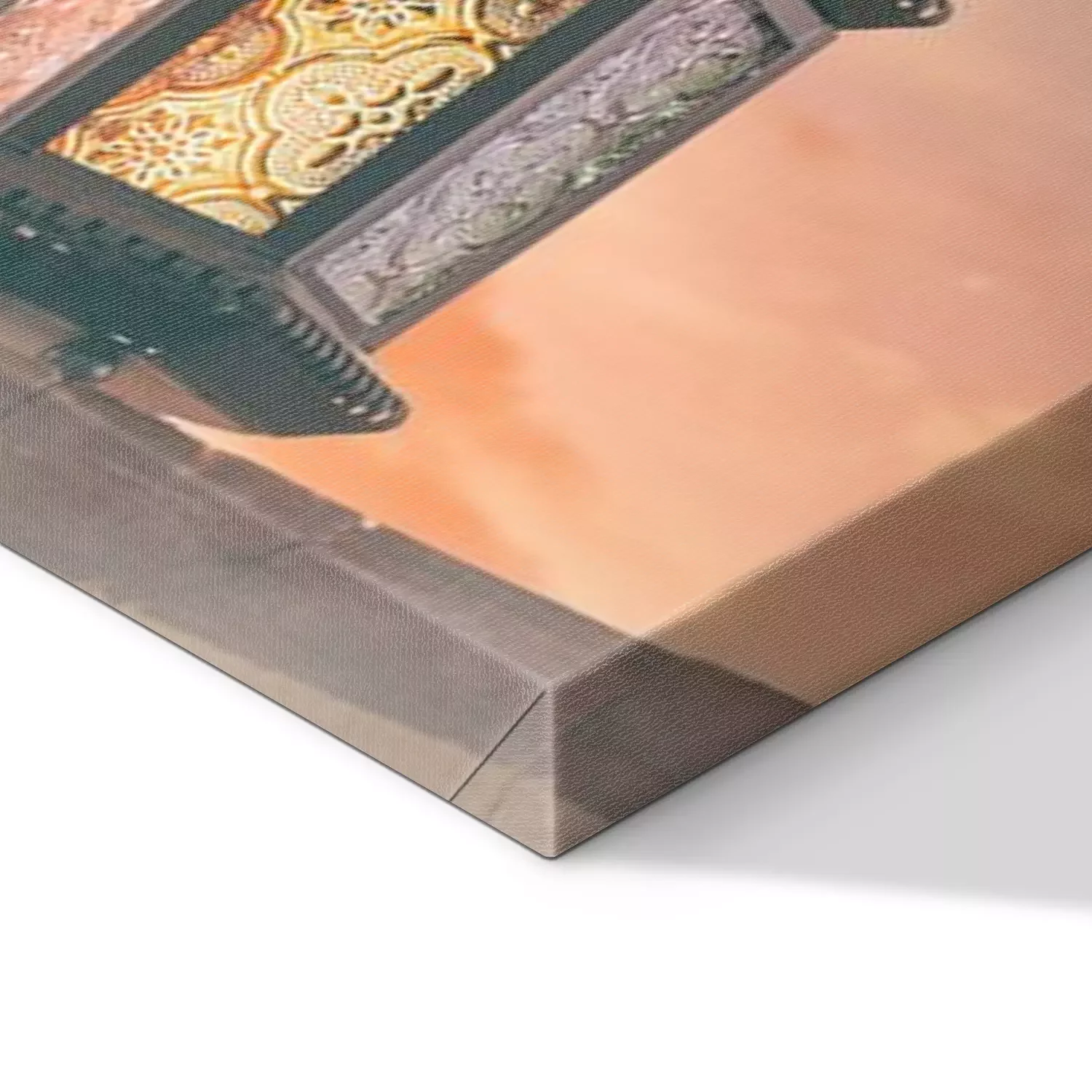 De print wordt aangebracht op hoogwaardig canvas dat op een schildersweefgetouw (spieraam) wordt gespannen. Omdat de print de zijranden bedekt, hoeft het ontwerp niet met een extra kader te worden omlijst. Wij raden ook composities aan die uit meerdere foto's bestaan en zo een coherente compositie vormen.