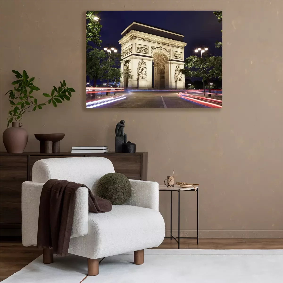 Canvas: Arc de Triomphe in Parijs bij nacht