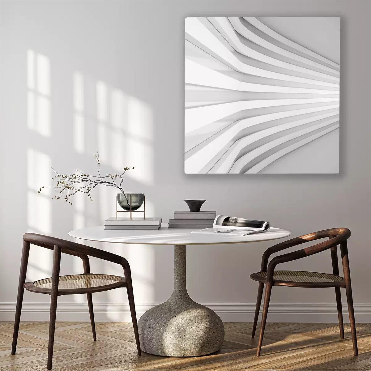 De print wordt aangebracht op hoogwaardig canvas dat op een schildersweefgetouw (spieraam) wordt gespannen. Omdat de print de zijranden bedekt, hoeft het ontwerp niet met een extra kader te worden omlijst. Wij raden ook composities aan die uit meerdere foto's bestaan en zo een coherente compositie vormen.