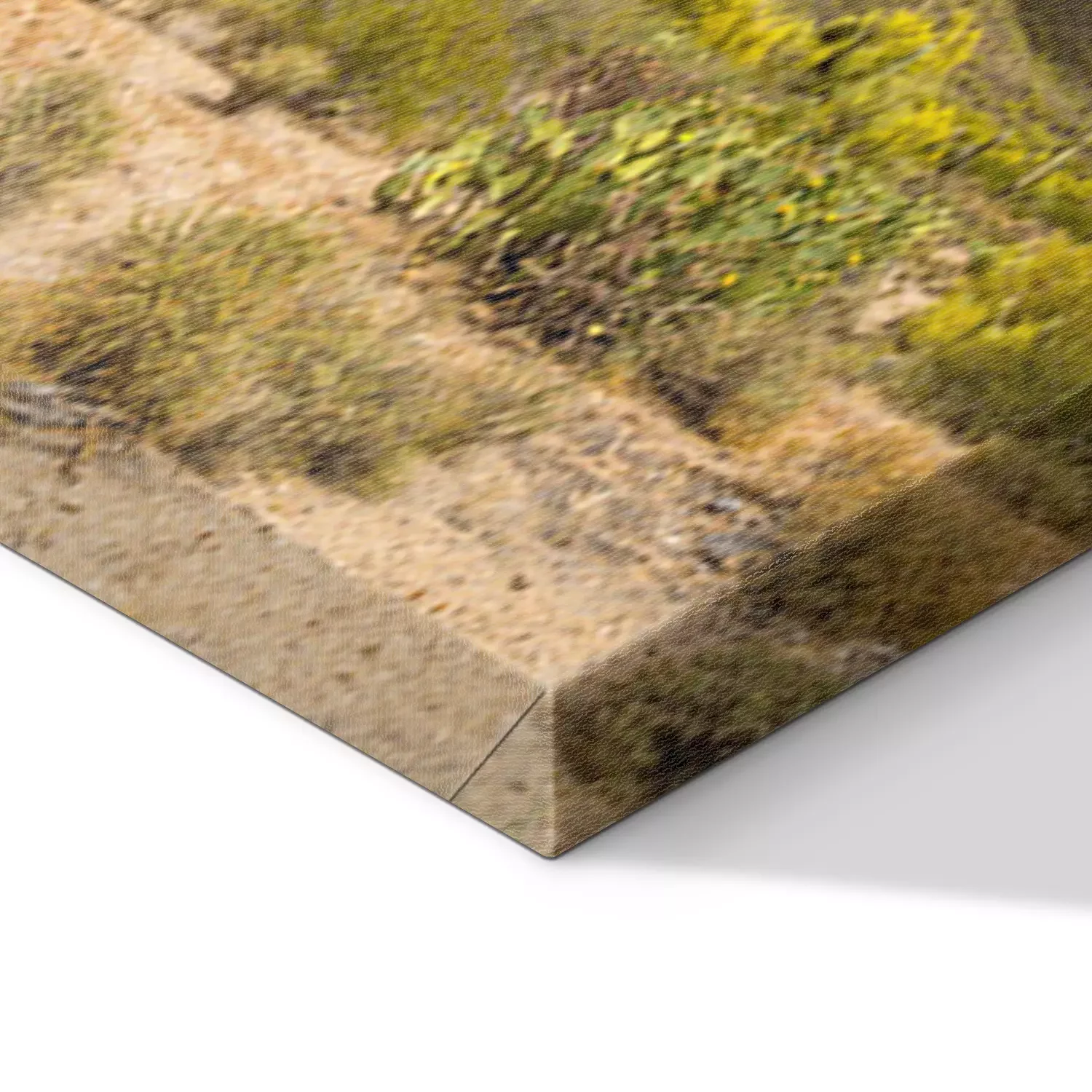 De print wordt aangebracht op hoogwaardig canvas dat op een schildersweefgetouw (spieraam) wordt gespannen. Omdat de print de zijranden bedekt, hoeft het ontwerp niet met een extra kader te worden omlijst. Wij raden ook composities aan die uit meerdere foto's bestaan en zo een coherente compositie vormen.