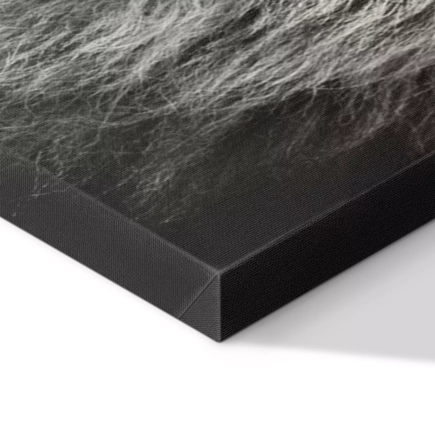 De print wordt aangebracht op hoogwaardig canvas dat op een schildersweefgetouw (spieraam) wordt gespannen. Omdat de print de zijranden bedekt, hoeft het ontwerp niet met een extra kader te worden omlijst. Wij raden ook composities aan die uit meerdere foto's bestaan en zo een coherente compositie vormen.