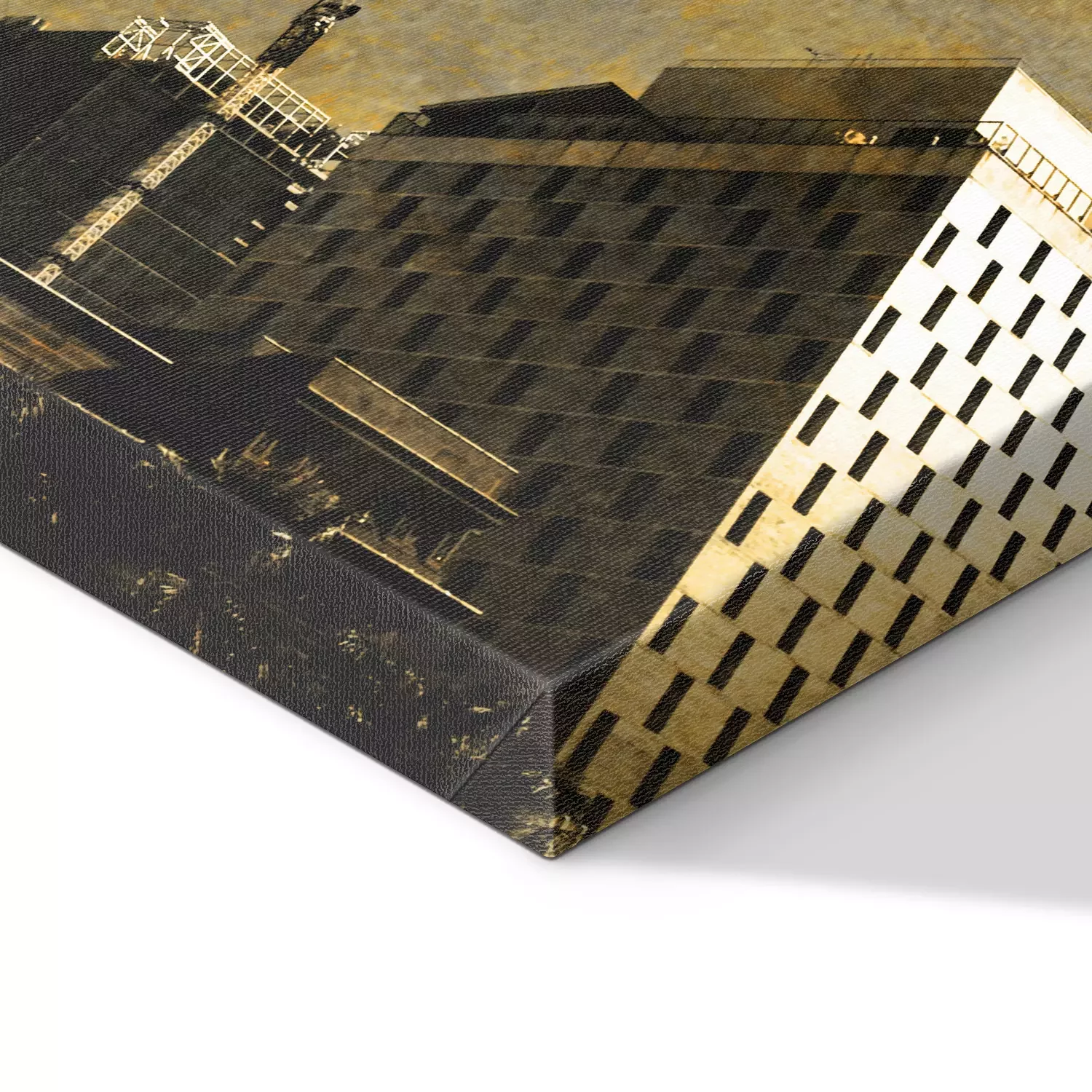 De print wordt aangebracht op hoogwaardig canvas dat op een schildersweefgetouw (spieraam) wordt gespannen. Omdat de print de zijranden bedekt, hoeft het ontwerp niet met een extra kader te worden omlijst. Wij raden ook composities aan die uit meerdere foto's bestaan en zo een coherente compositie vormen.
