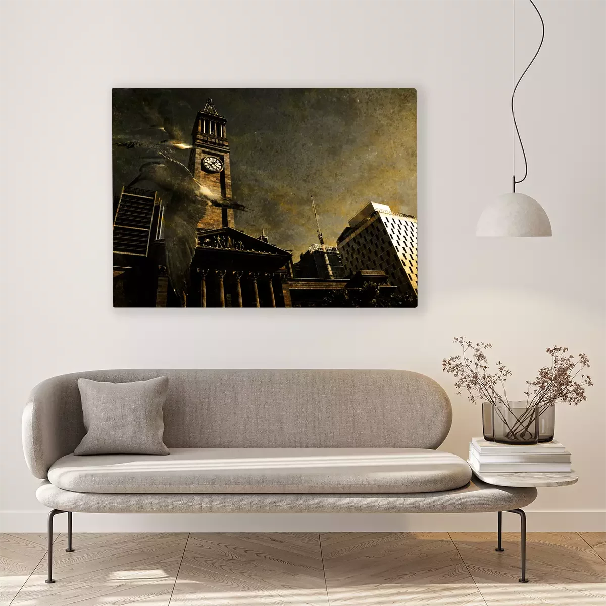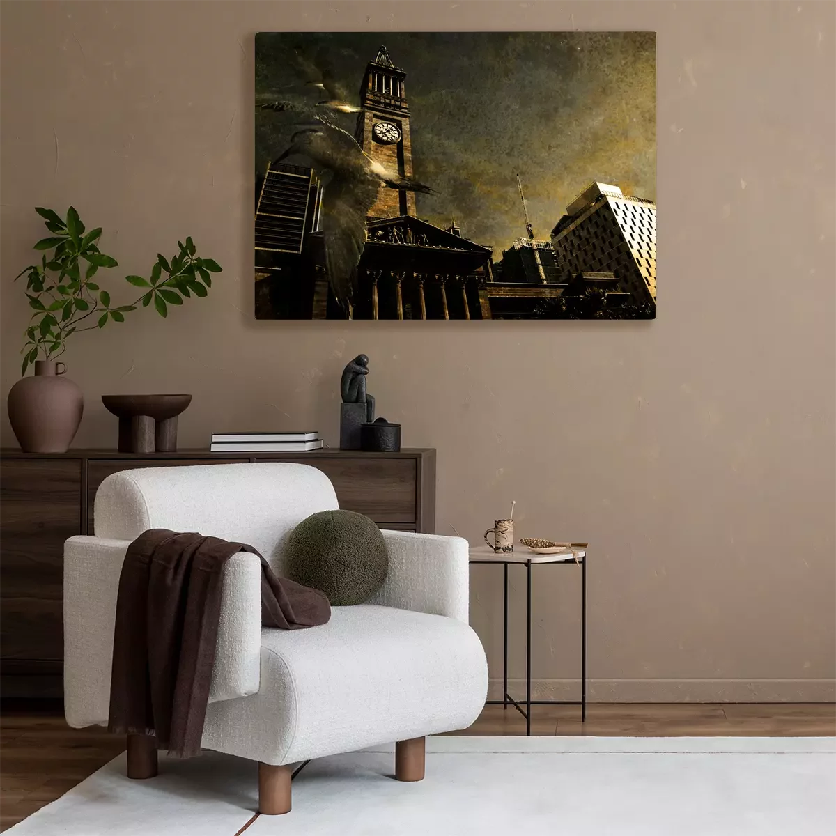 Canvas: Art Foto Van Een Stad centrum van de stad met vogels vliegen