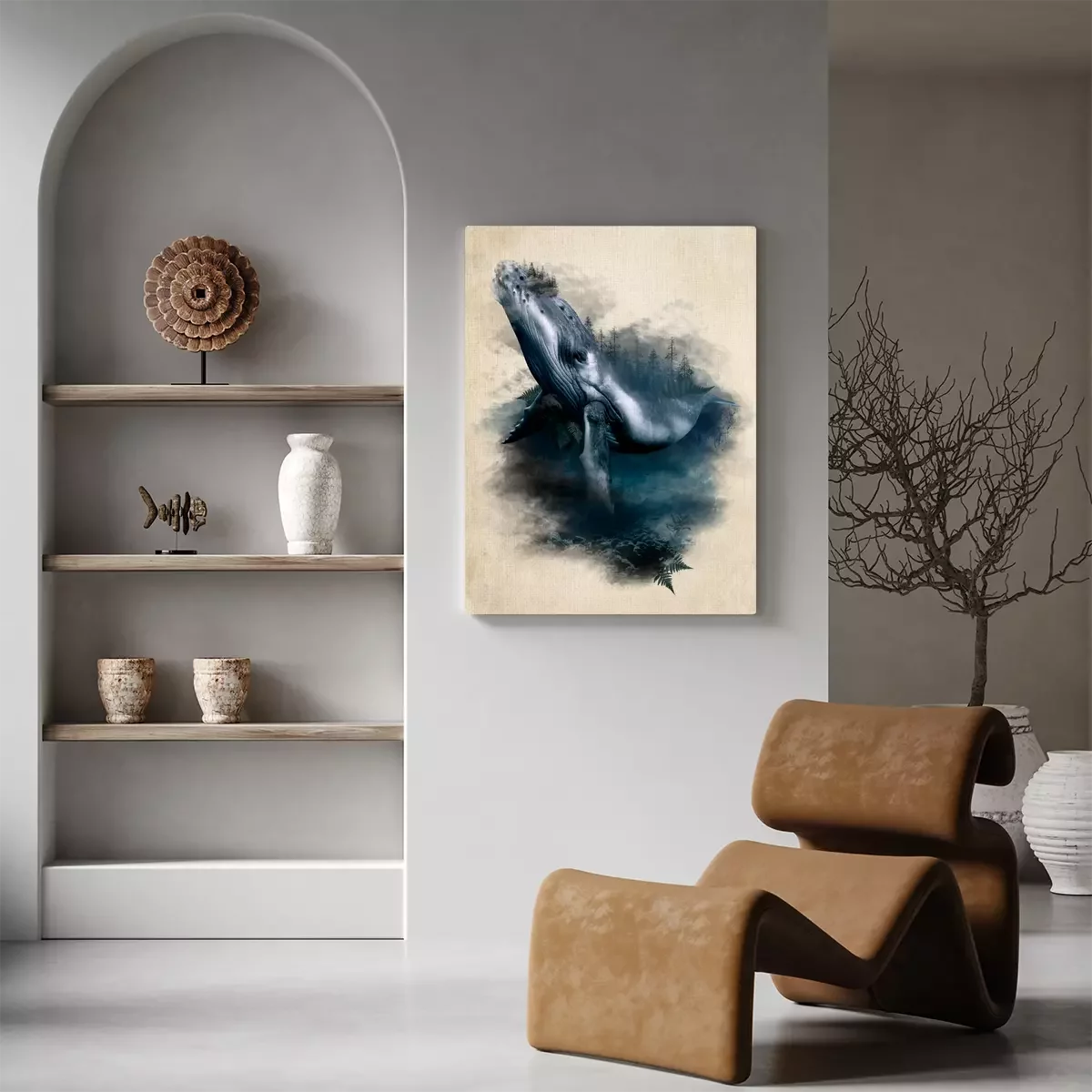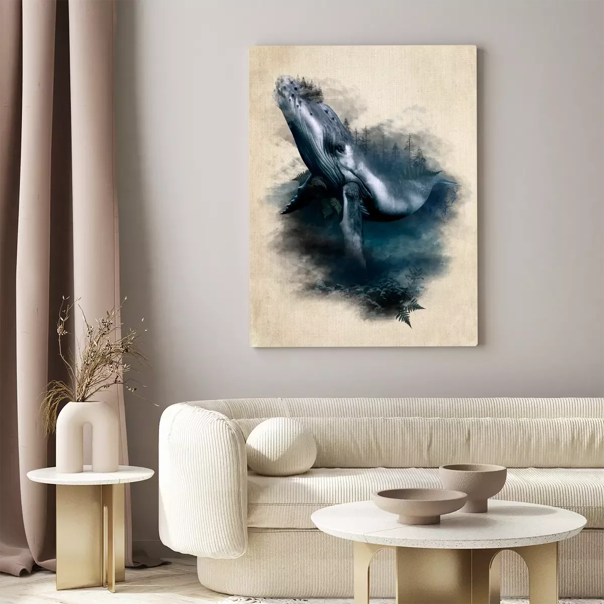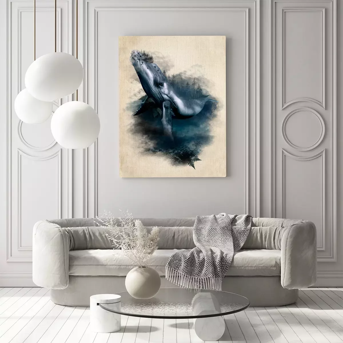 Artistiek aquarelportret van een walvis