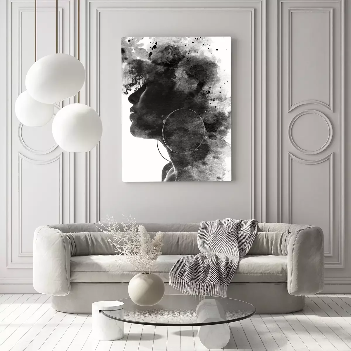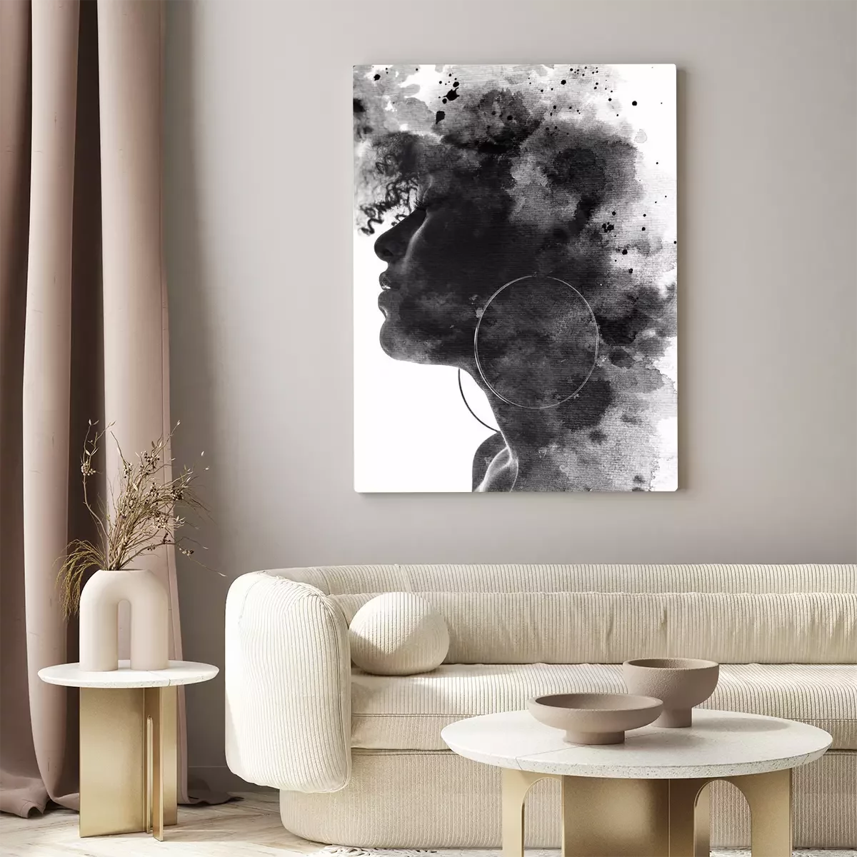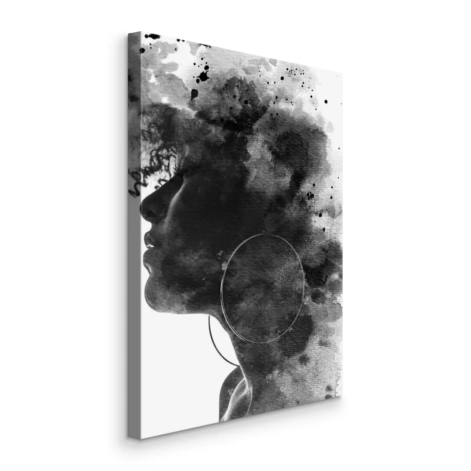 Canvas: Artistiek portret van een jonge vrouw in het zwart