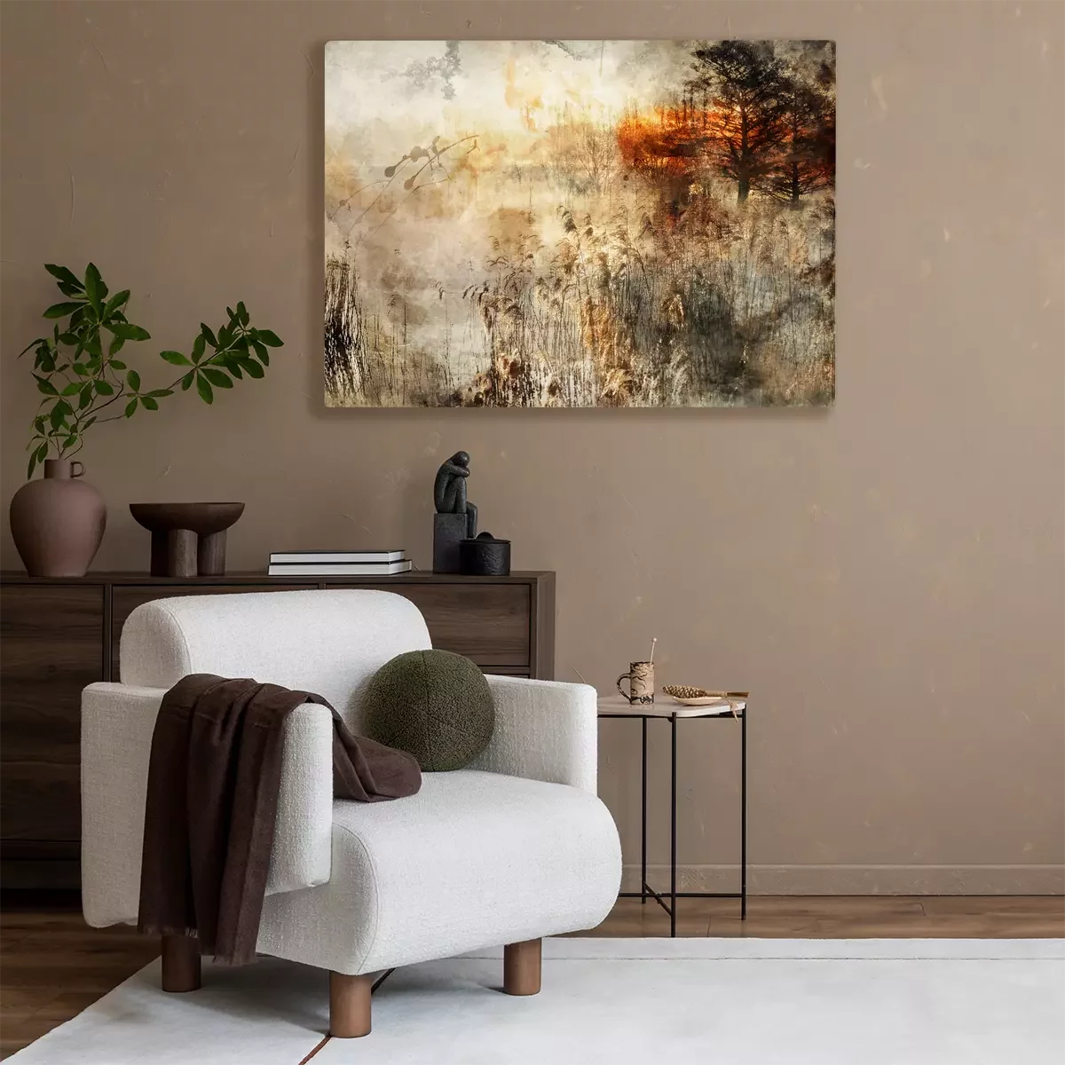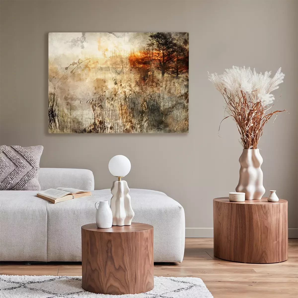 Artistieke compositie met gras en een boom