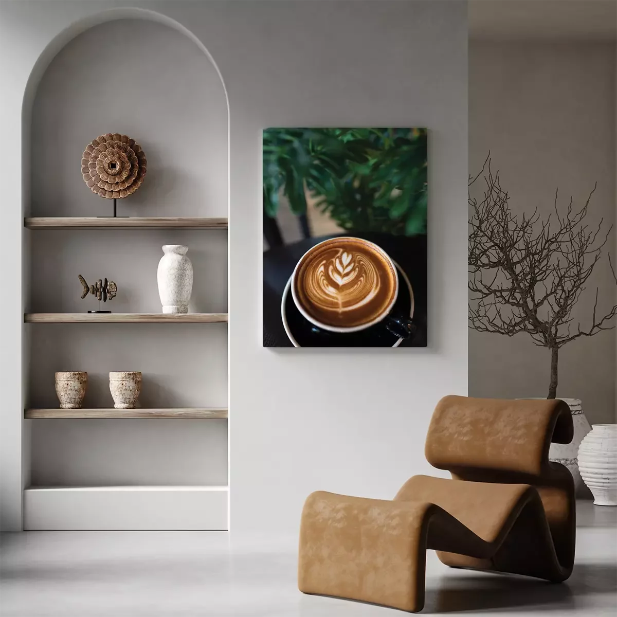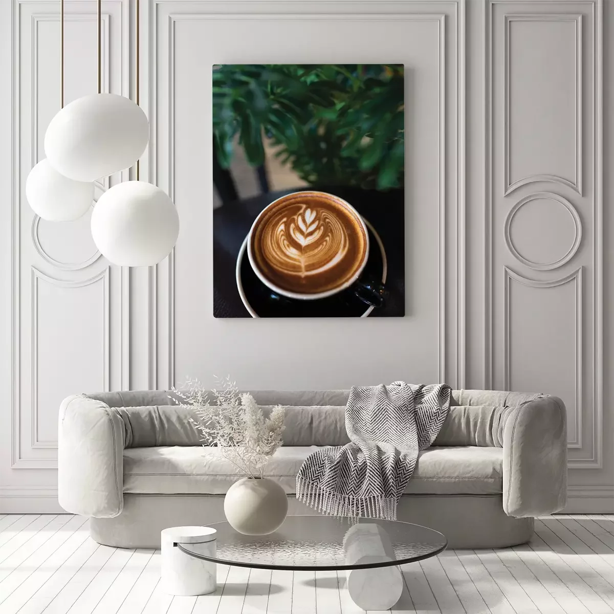 Canvas: Artistieke decoratie van koffie met melk in een kopje