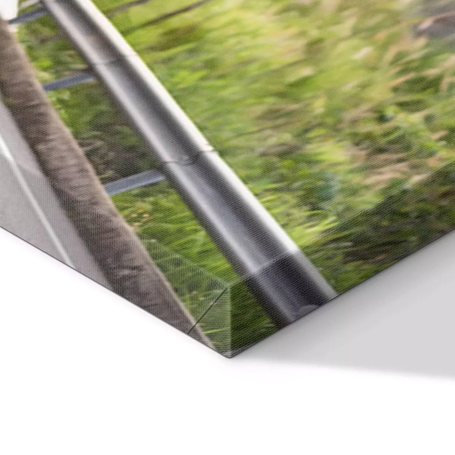 De print wordt aangebracht op hoogwaardig canvas dat op een schildersweefgetouw (spieraam) wordt gespannen. Omdat de print de zijranden bedekt, hoeft het ontwerp niet met een extra kader te worden omlijst. Wij raden ook composities aan die uit meerdere foto's bestaan en zo een coherente compositie vormen.