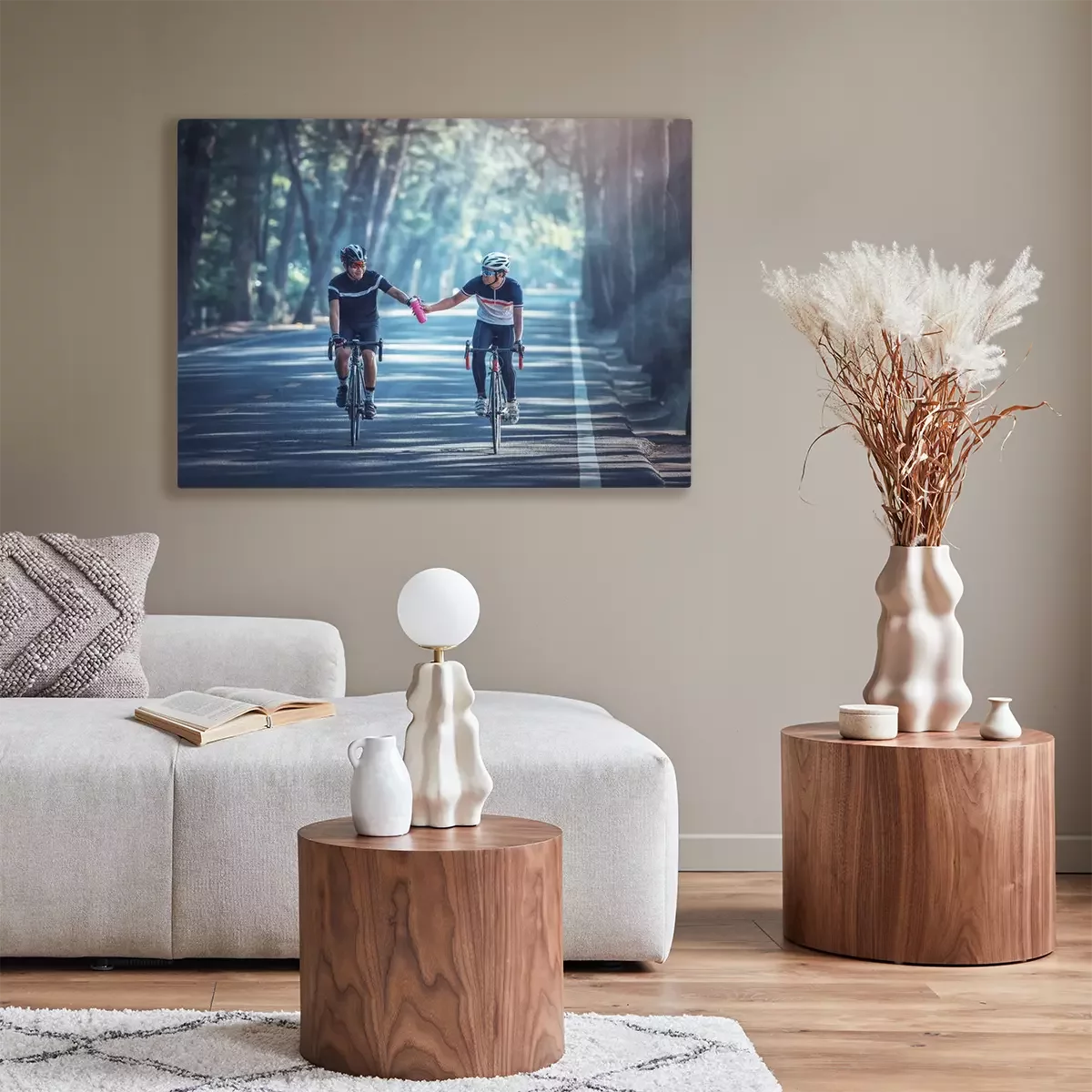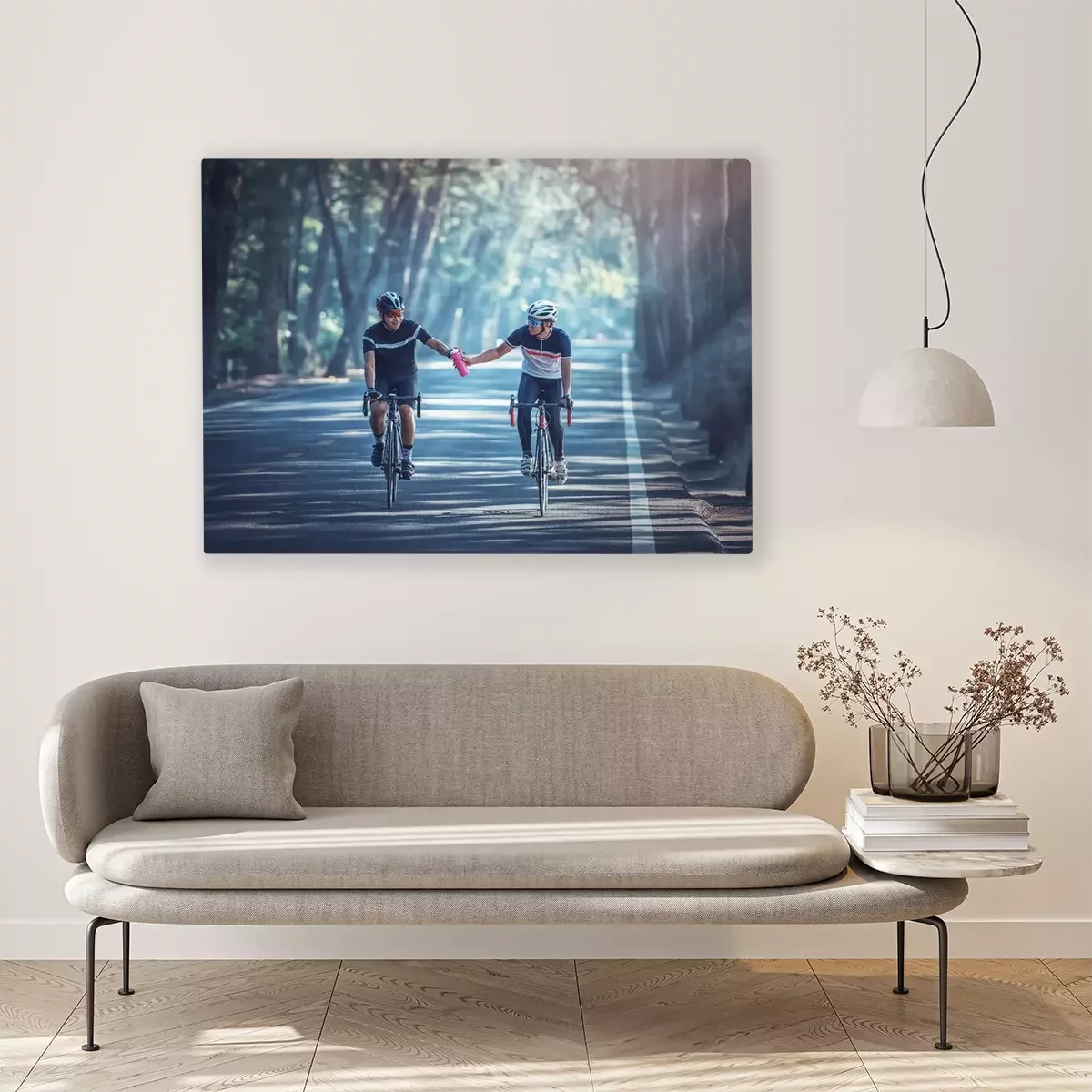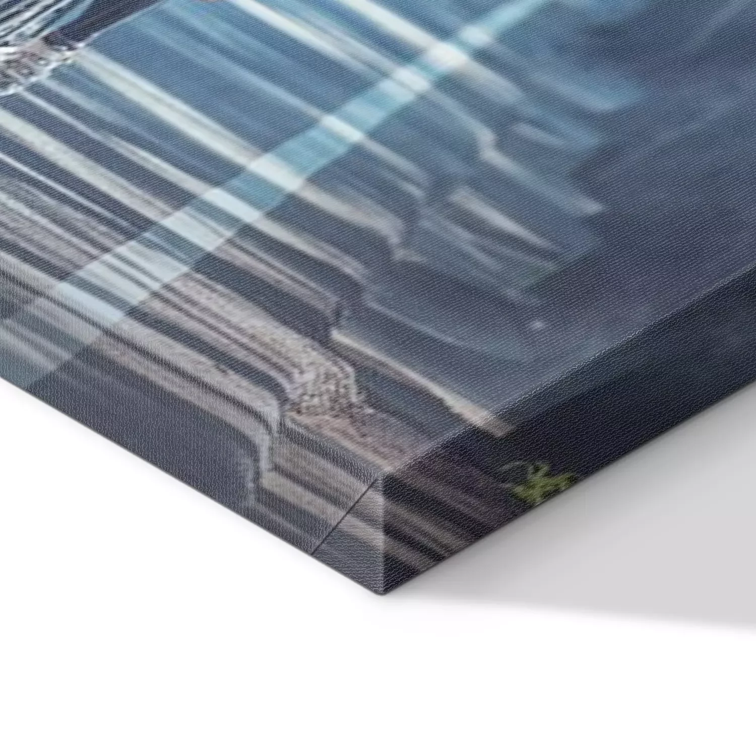 De print wordt aangebracht op hoogwaardig canvas dat op een schildersweefgetouw (spieraam) wordt gespannen. Omdat de print de zijranden bedekt, hoeft het ontwerp niet met een extra kader te worden omlijst. Wij raden ook composities aan die uit meerdere foto's bestaan en zo een coherente compositie vormen.