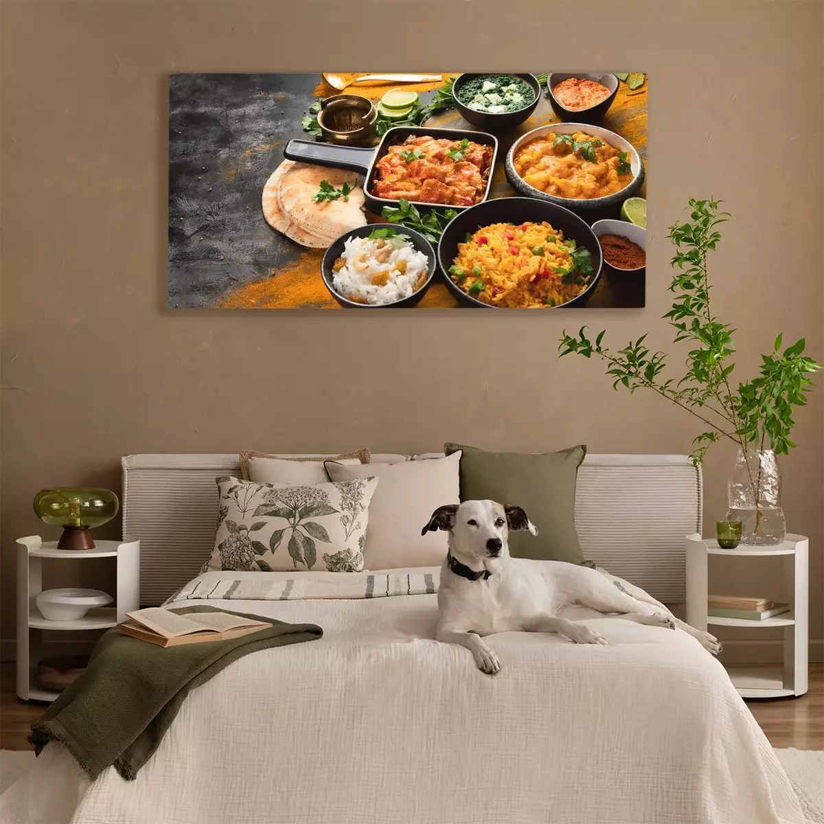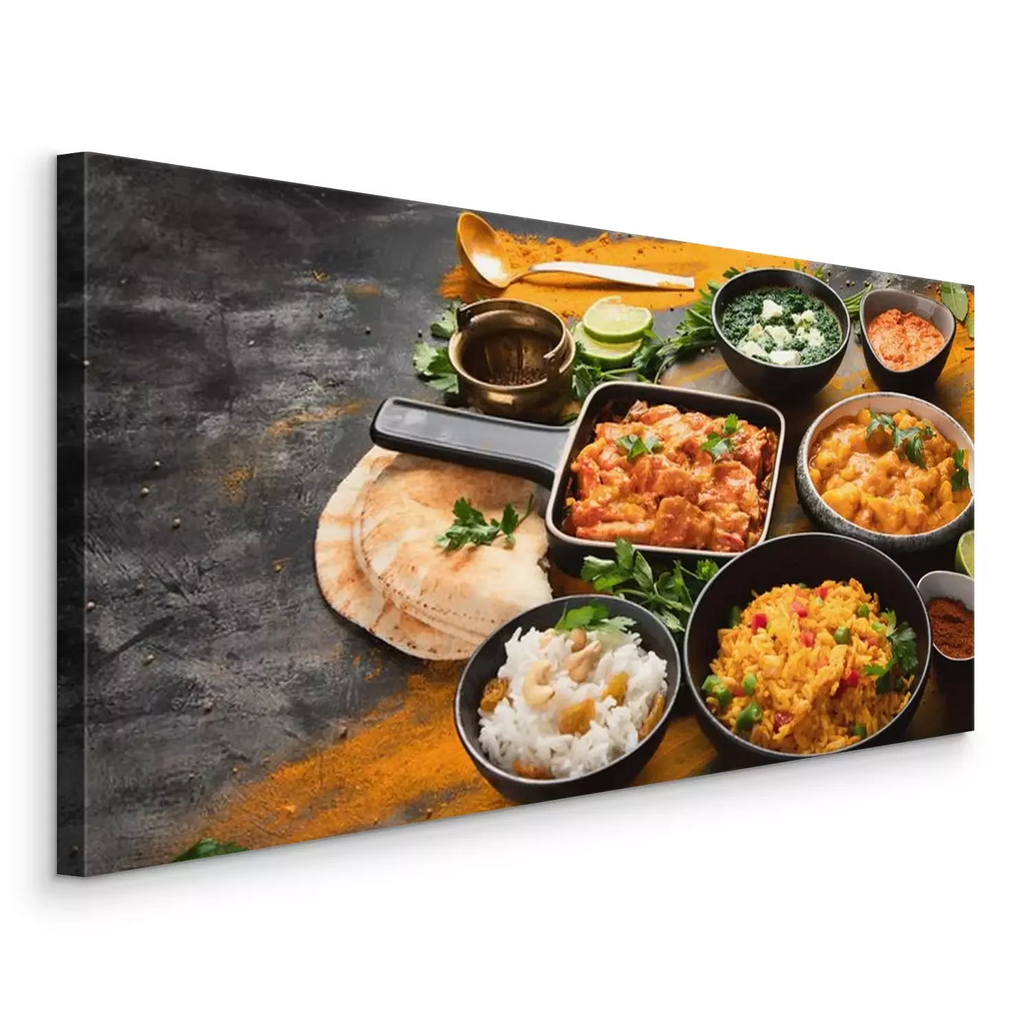Canvas: Assorted indian food on black background..