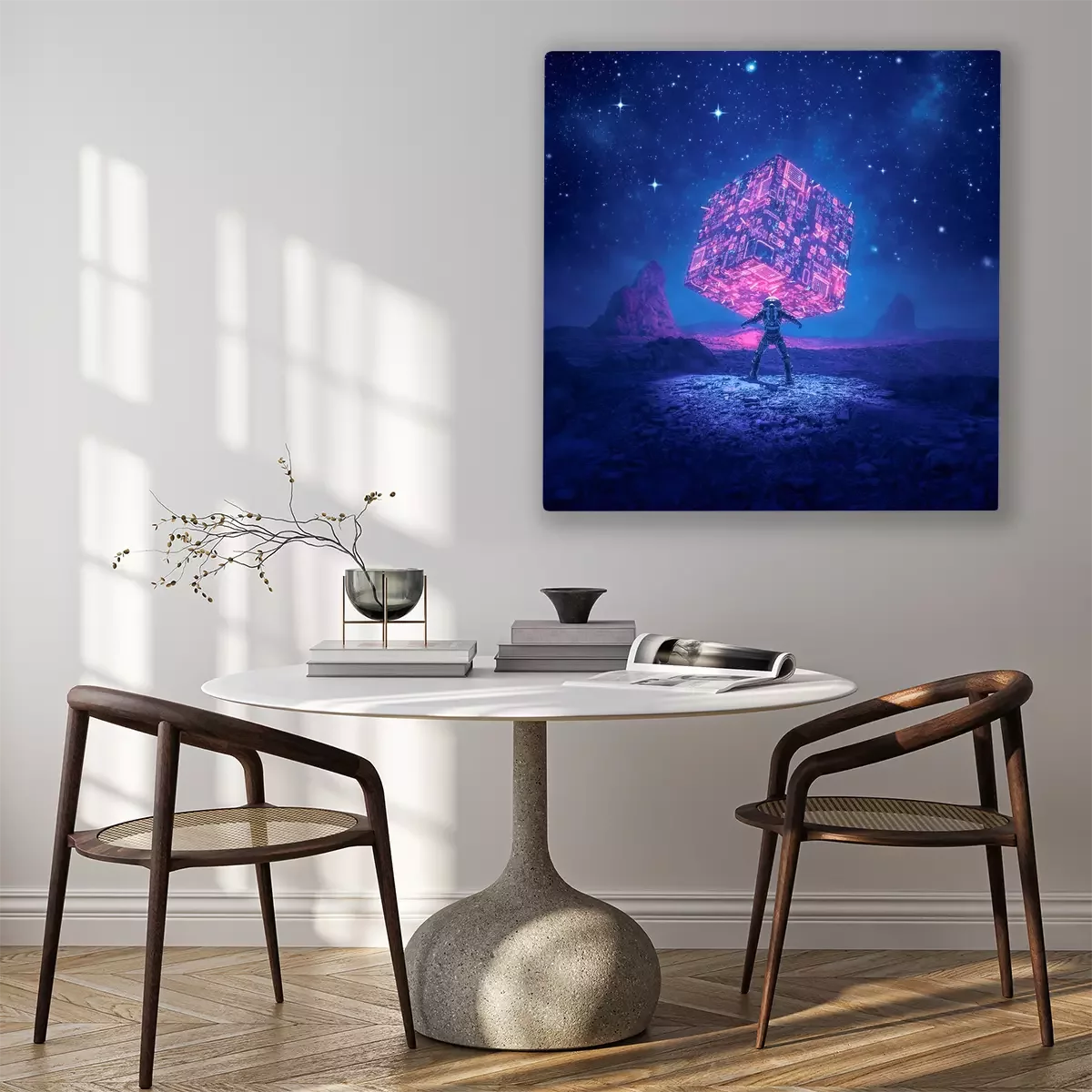 De print wordt aangebracht op hoogwaardig canvas dat op een schildersweefgetouw (spieraam) wordt gespannen. Omdat de print de zijranden bedekt, hoeft het ontwerp niet met een extra kader te worden omlijst. Wij raden ook composities aan die uit meerdere foto's bestaan en zo een coherente compositie vormen.