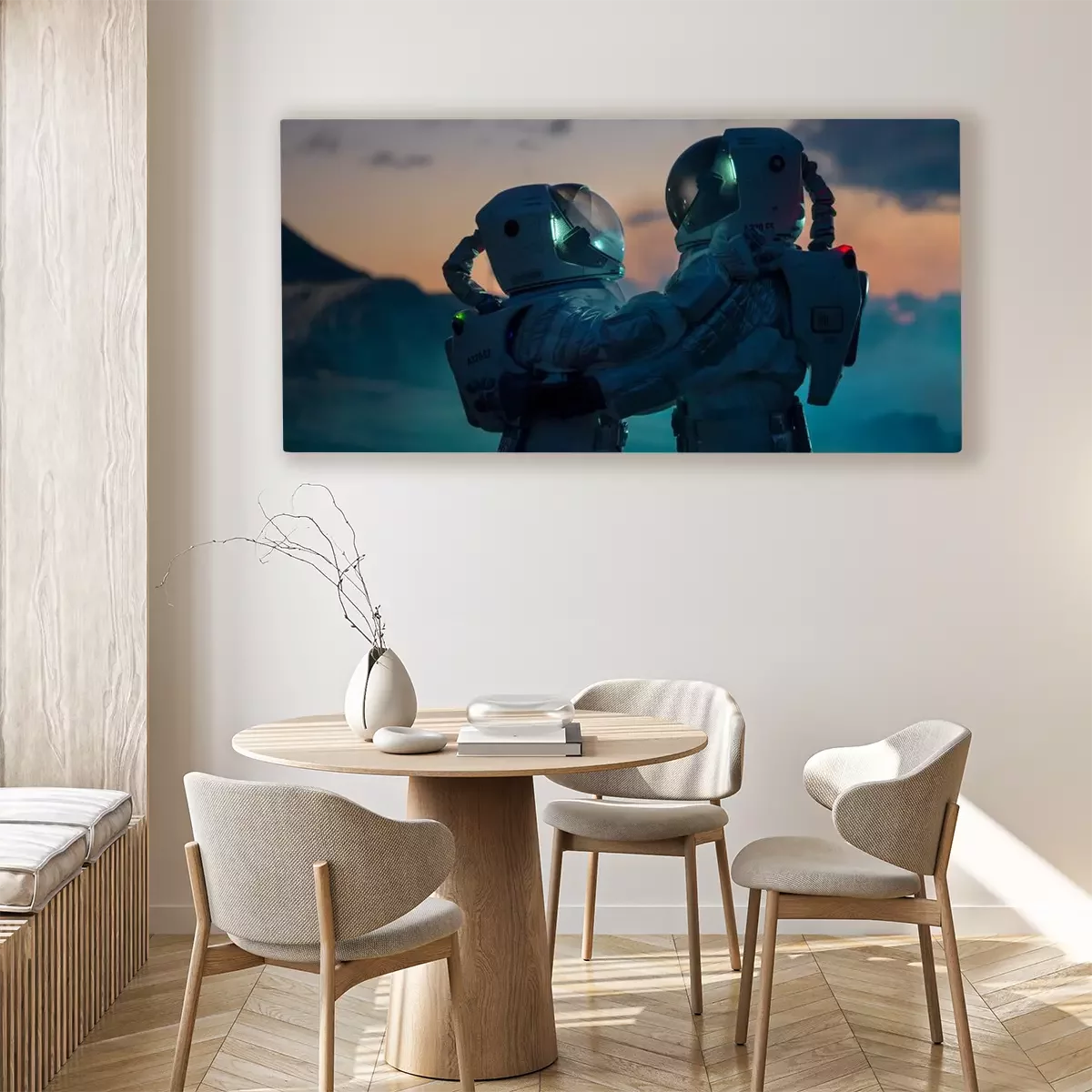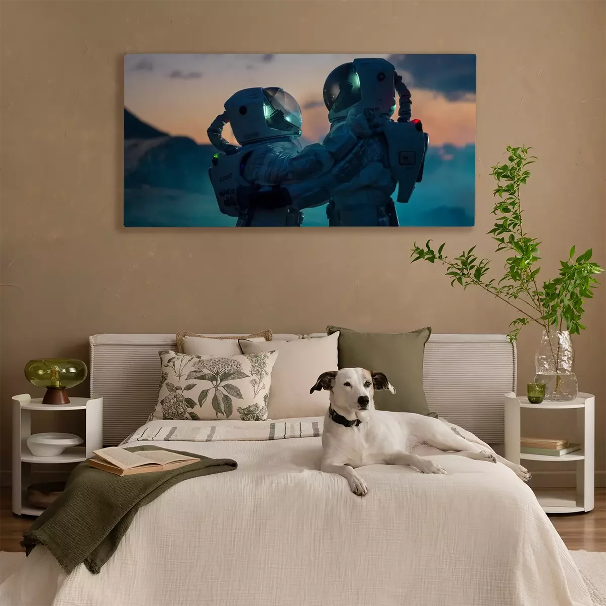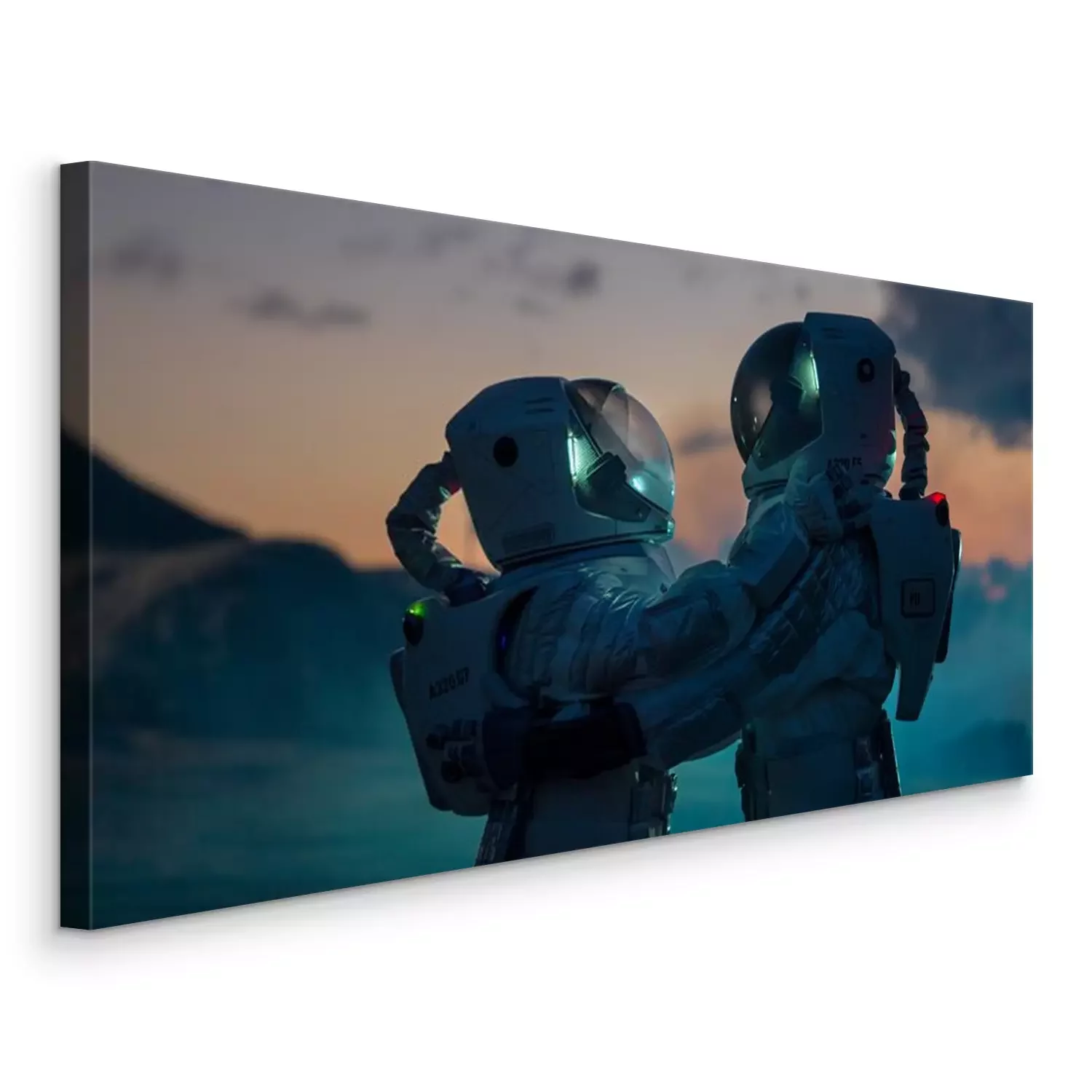 De print wordt aangebracht op hoogwaardig canvas dat op een schildersweefgetouw (spieraam) wordt gespannen. Omdat de print de zijranden bedekt, hoeft het ontwerp niet met een extra kader te worden omlijst. Wij raden ook composities aan die uit meerdere foto's bestaan en zo een coherente compositie vormen.